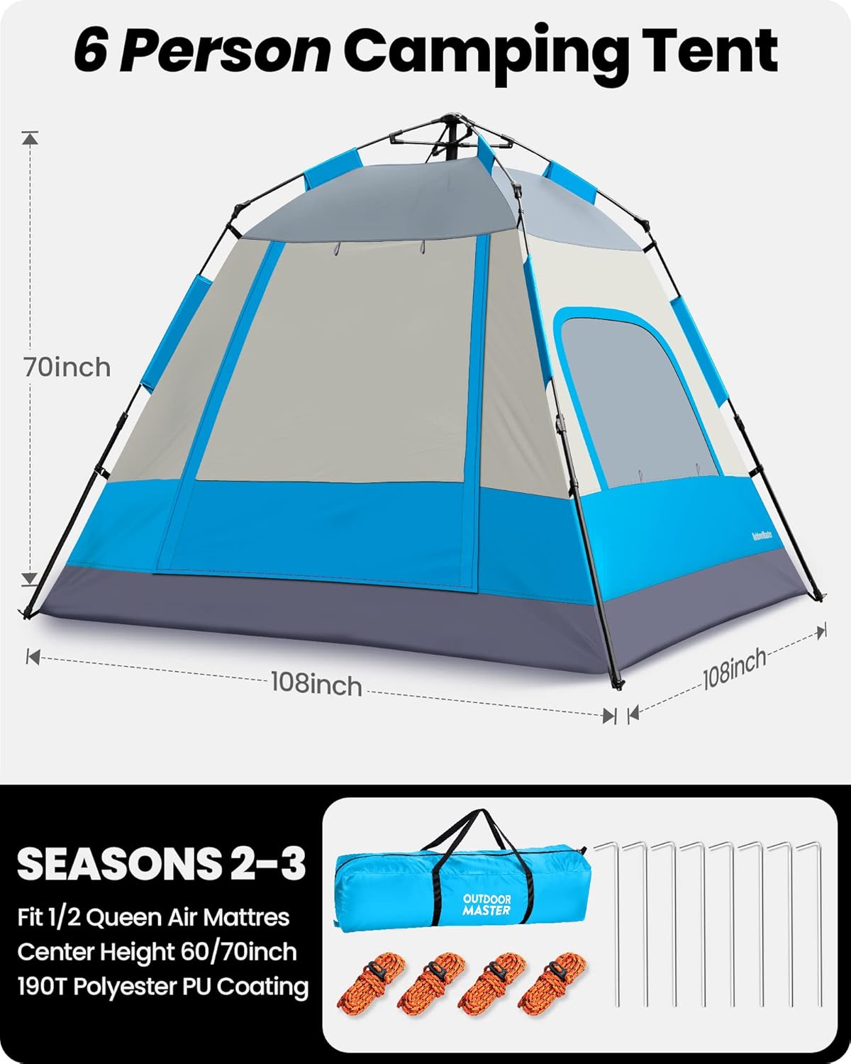 OutdoorMaster Camping Tents, 4/6 Person Camping Tent with Blackout Shelter Technology, Easy Setup in 60 Seconds, Weatherproof Pop Up Tent with Top Rainfly, Instant Cabin Tent