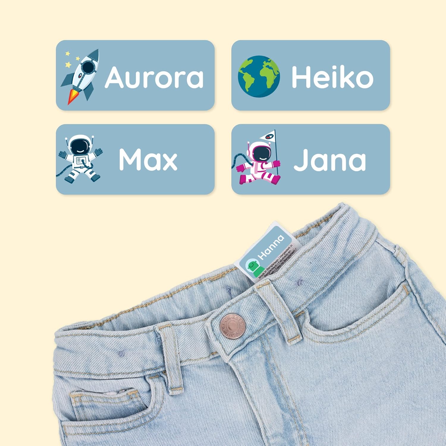 Personalized Name Labels for Kids (60) – Waterproof and Durable Clothing Labels for Kids, Labels for School Supplies, Daycare, and Preschool – Space