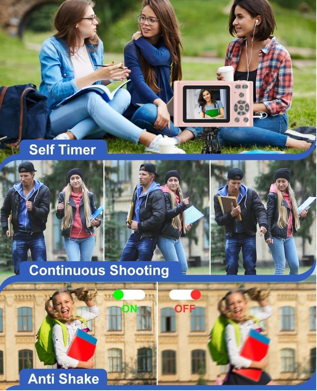 📸[ANTI SHAKE]-This pink digital camera for photography supports video mode, a retro camera with built-in anti-shake function, and you can take photos as often as you like!This is an entry level, not suitable for professional photographers