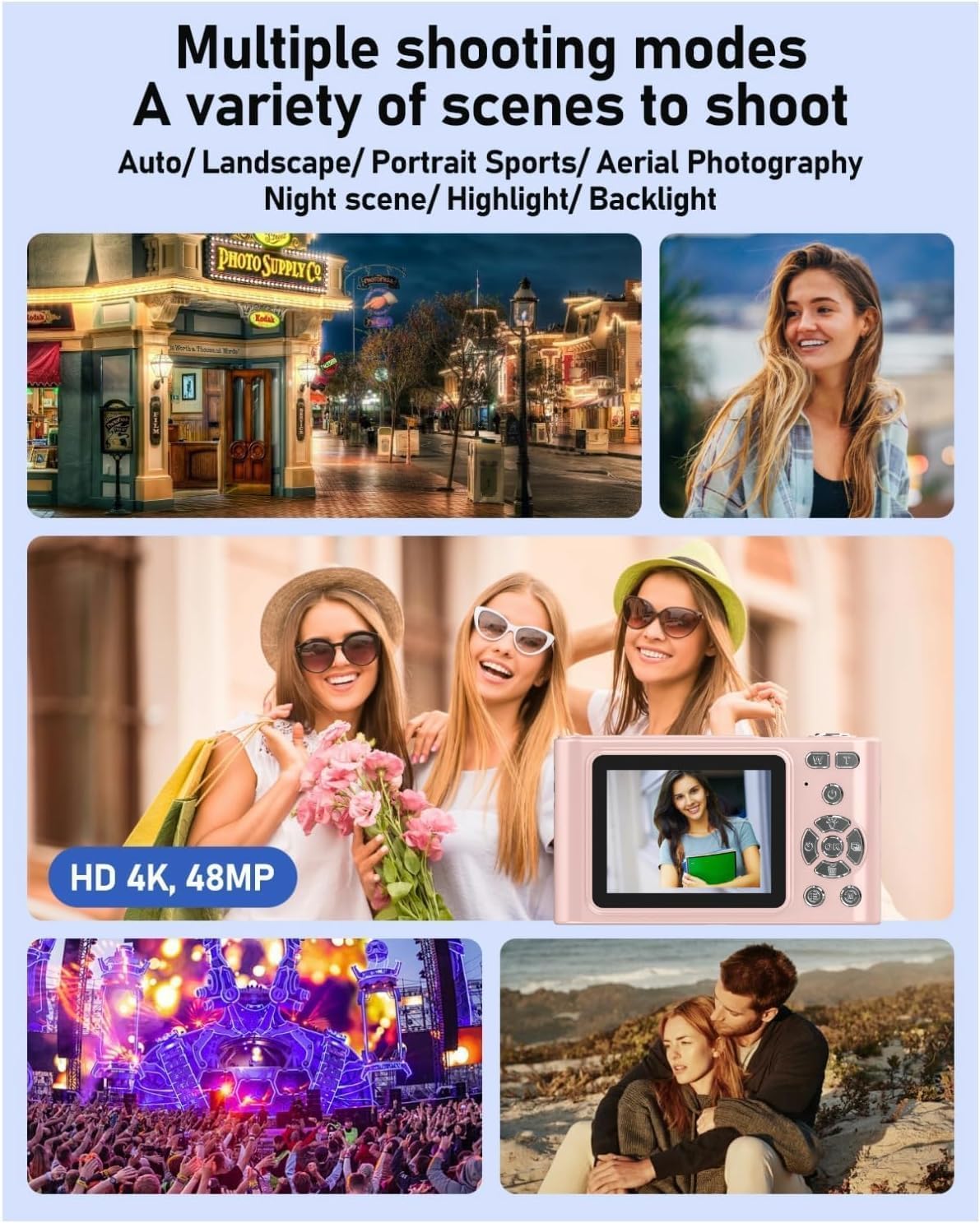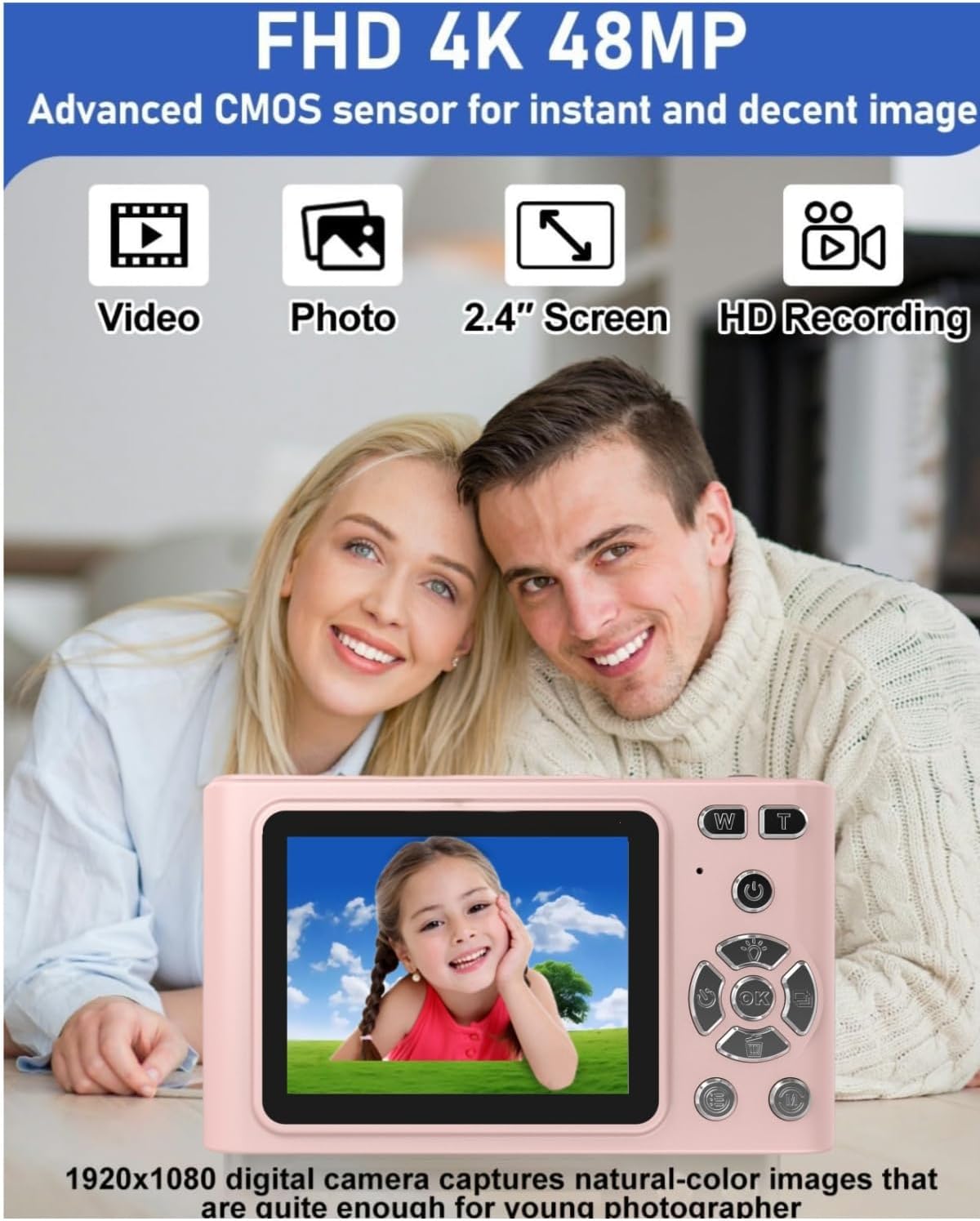 📸[AUTOFOCUS ]- The compact pink digital camera supports a powerful focusing function, digital camera to ensure precise focus of the lenses, point and shoot digital cameras allowing you to easily capture clear and wonderful moments. Our 4k autofocus digital cameras perfect as a Christmas or birthday gift! Not suitable for adults