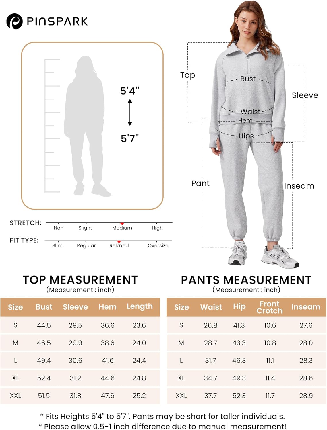 PINSPARK Two Piece Sets for Women Fleece Half Zip Pullover Sweatsuits with Jogger Sweatpants Travel Outfits Matching Sets