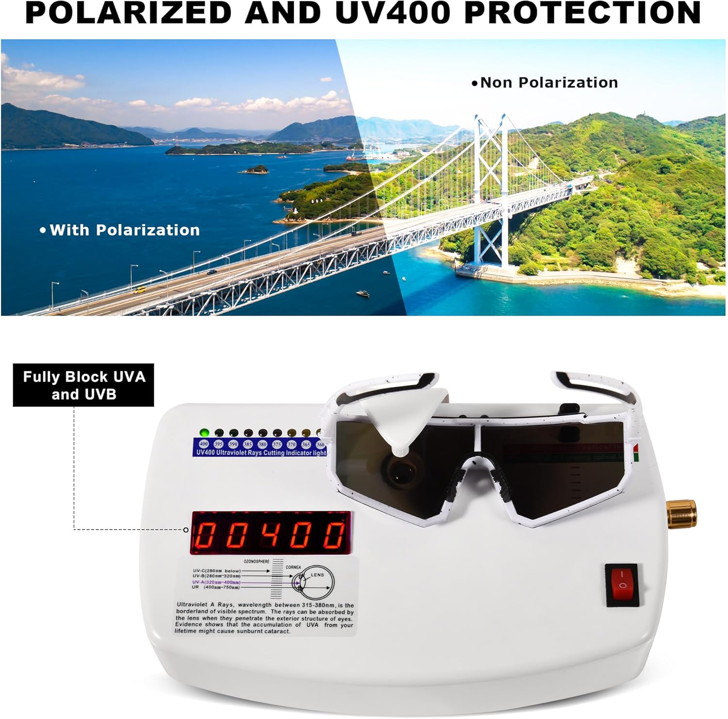 100% UV400 protective for this sports sunglasses, blocks 100% harmful UVA & UVB Rays.