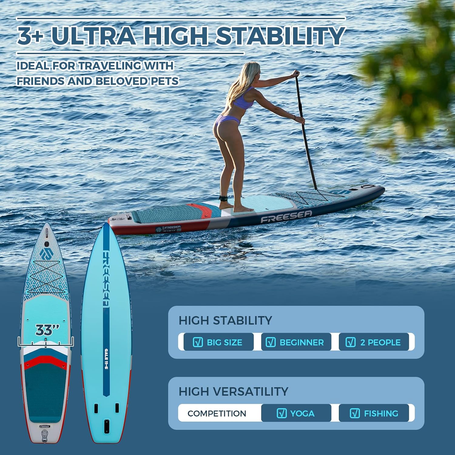 🏄🏼‍♀ SUPERIOR QUALITY & DESIGN DETAILS ➡️ Freesea Stand Up Inflatable Paddleboards feature oversized EVA non-slip deck pads with a diamond groove design that has been tested over 1000 times for non-slip, providing you with superior non-slip performance and comfort. Whether you enjoy exploring calm bays or chasing waves, Freesea paddleboards will provide you with the ultimate water sports experience.