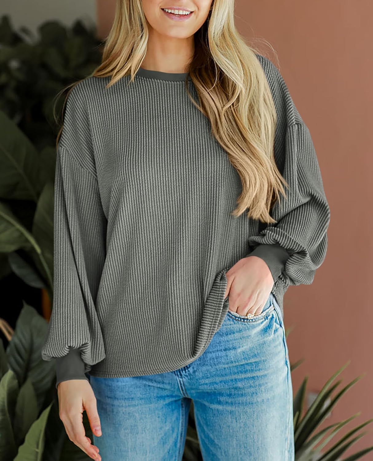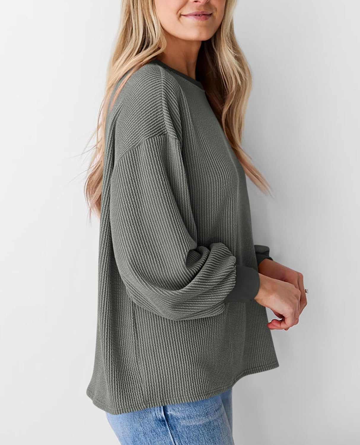 PRETTYGARDEN Women’s Ribbed Long Sleeve Tee Tops Dressy Casual Tunic Blouses