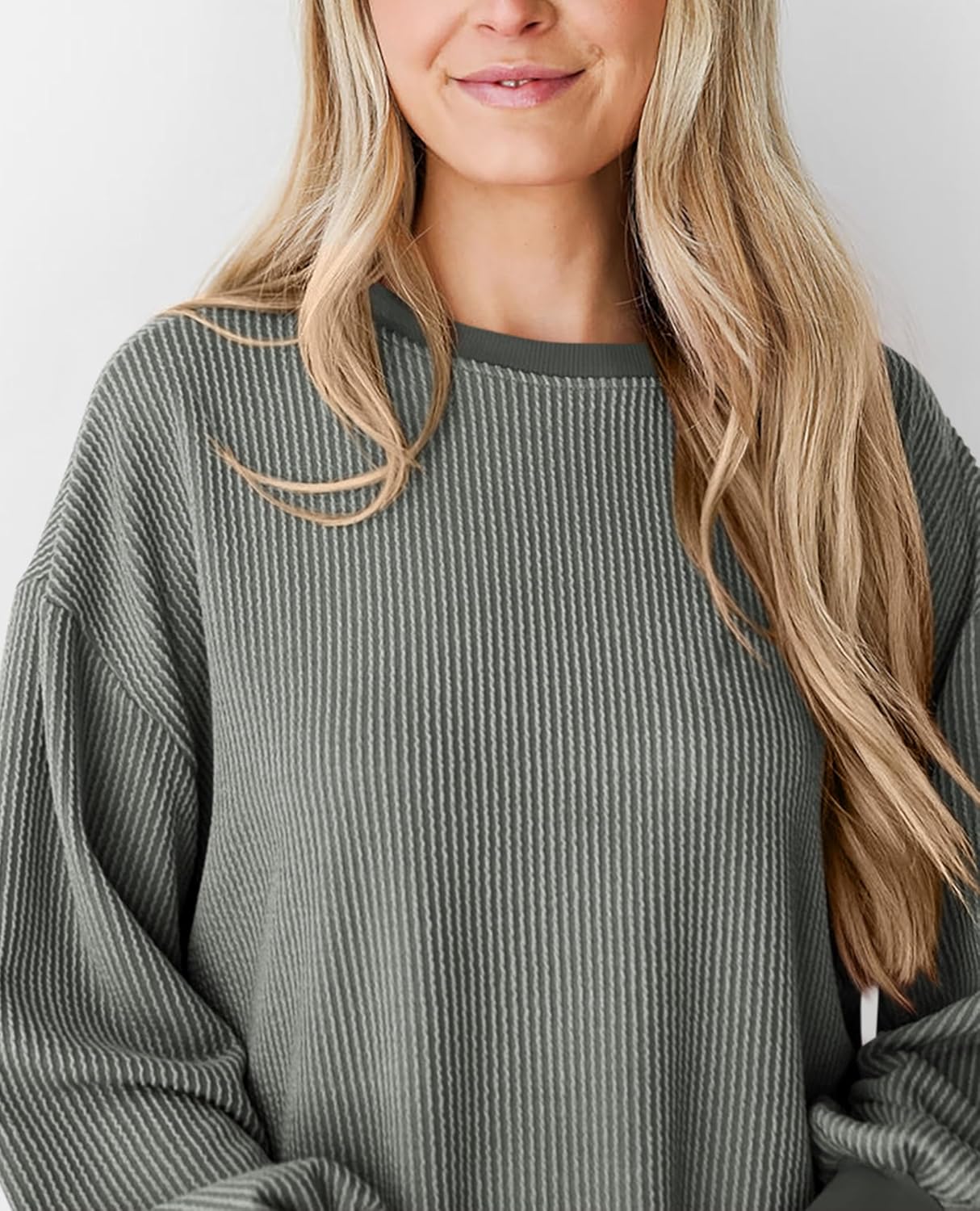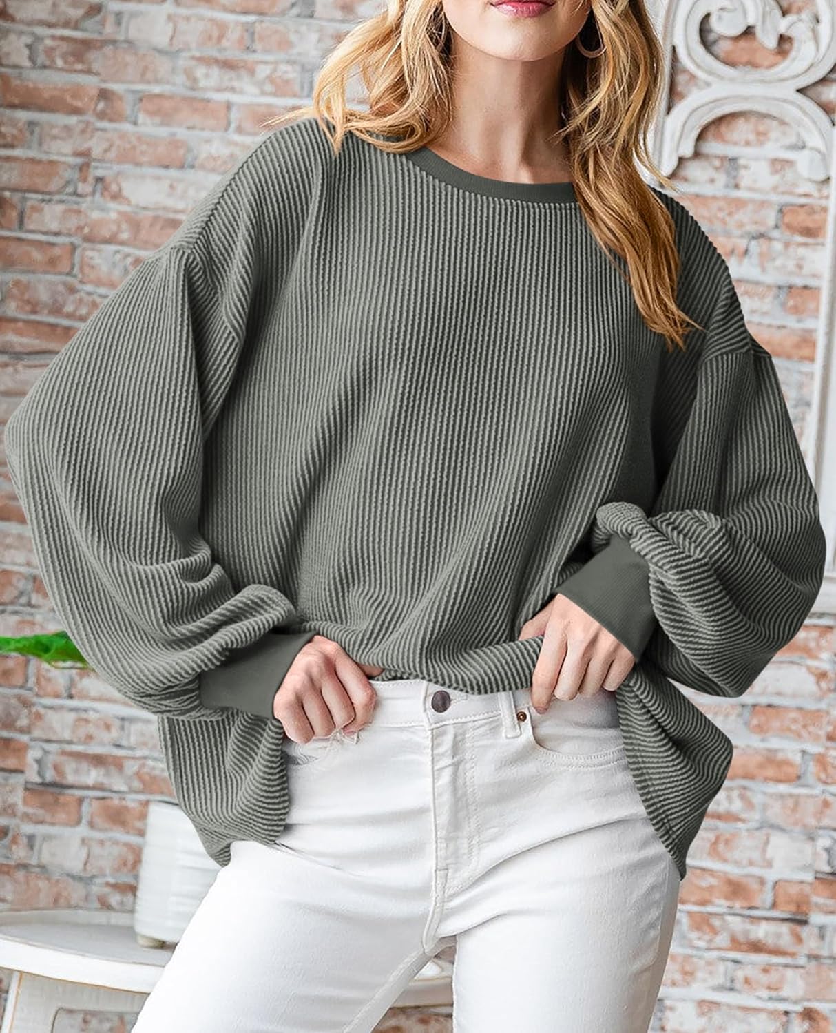 PRETTYGARDEN Women’s Long Sleeve Tee Shirts Fall Trendy Clothes Casual Loose Crewneck Ribbed Blouse Tunic Tops