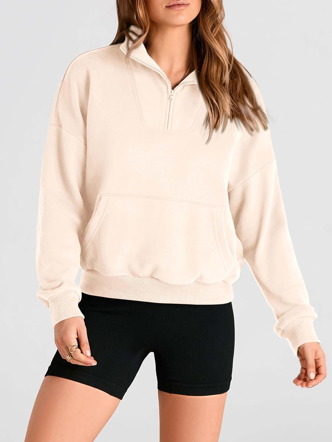 PRETTYGARDEN Womens Cropped Quarter Zip Pullover Sweatshirt with Pockets fall sweatshirtsfall sweatshirts