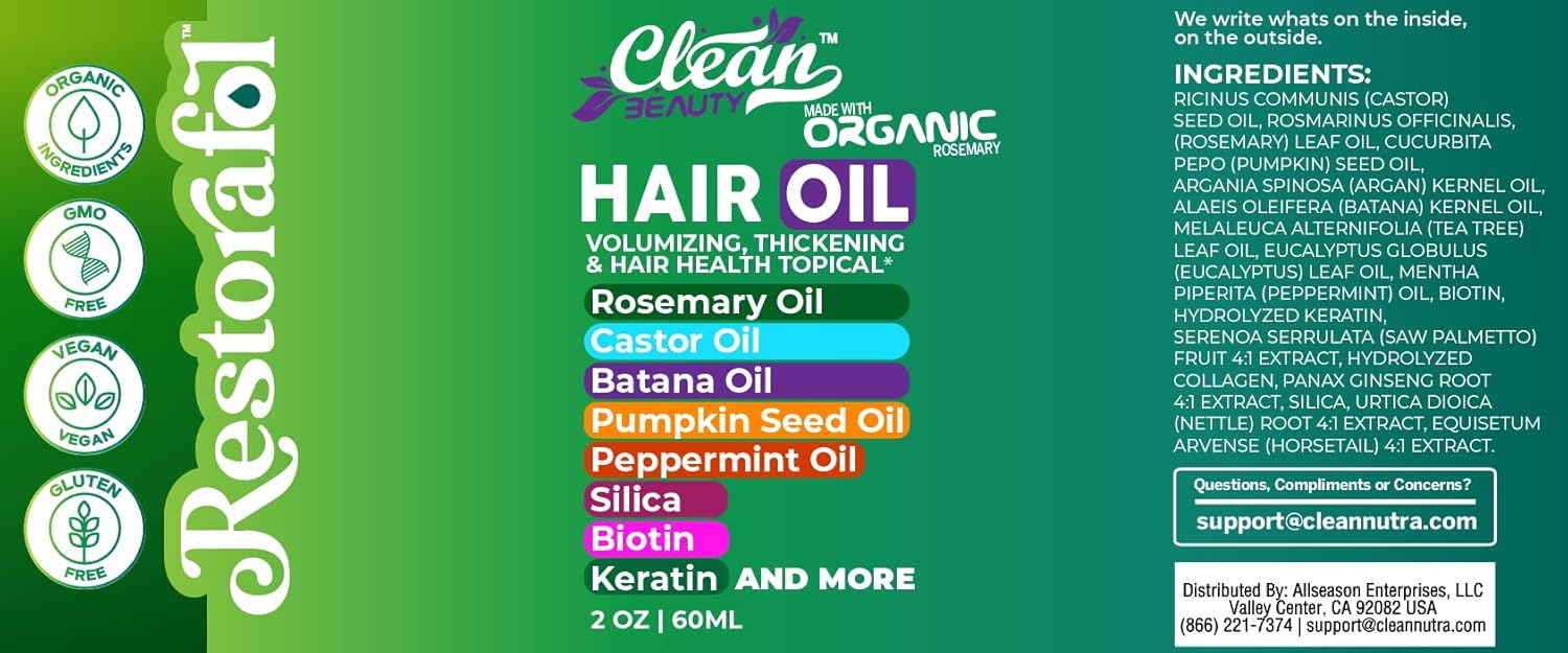 Rosemary Hair Oil with Castor, Pumpkin Seed, Peppermint, Silica, Biotin, Keratin, Saw Palmetto, Horsetail, Tea Tree, Eucalyptus, Vitamin E, Aloe Vera, Jojoba (2)