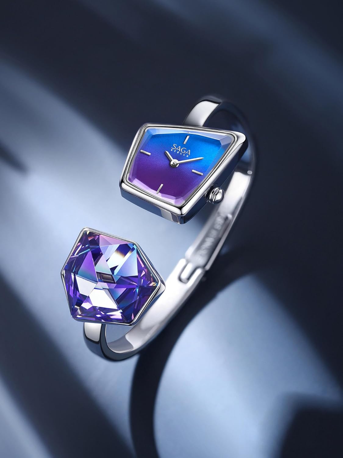 SAGA Bangle Watch Crystal Luxury Ladies reloj para Mujer Women’s Wrist Watches Dainty Bracelet Diamond Fashion Watches Expensive Bling Watches (Blue Crystal)