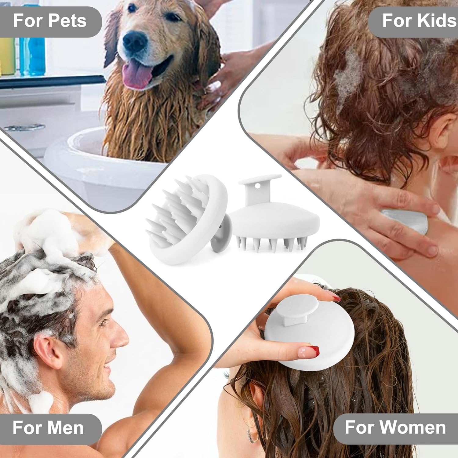 Scalp Massager, Soft Silicone Hair Scrubber for Hair Growth & Head Massage, Shampoo Brush Scalp Scrubber, Dry & Wet Shower Hair Brush for Women Men Adult Child (White)