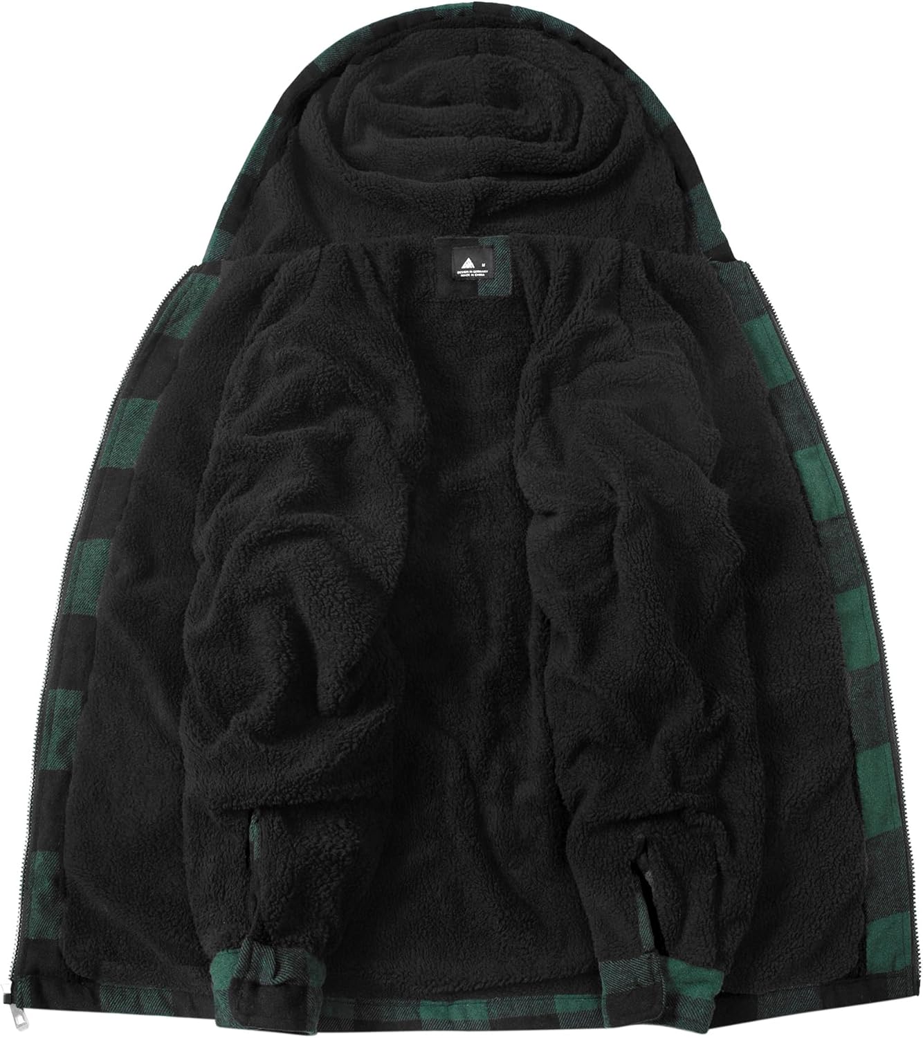 SCODI Men’s Flannel Jacket Sherpa Lined Hoodies Zip Up Fleece Plaid Shirt Jackets Winter Outdoor Coat Warm Outwear