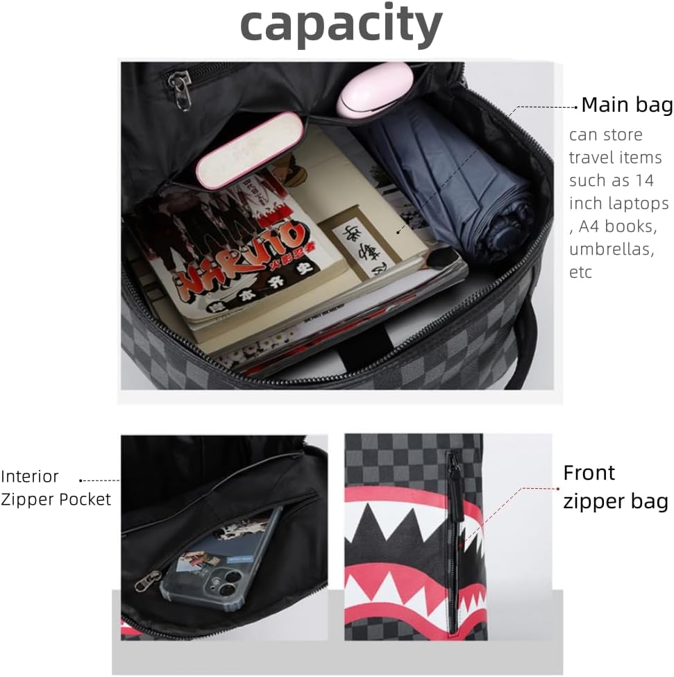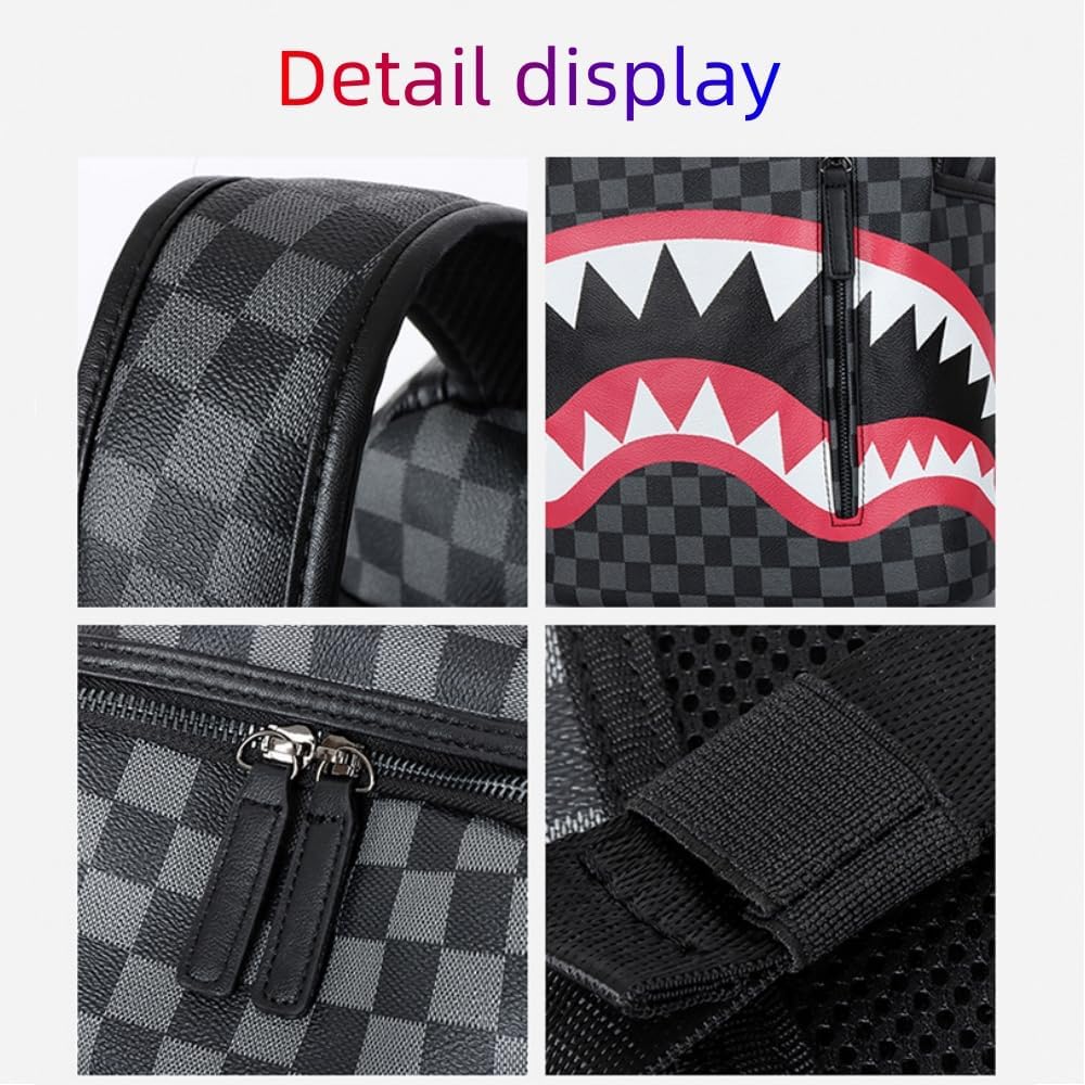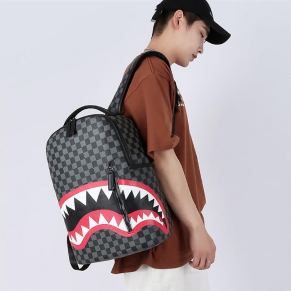 SHARPBACK Large Capacity Street Trend Shark Bag Men’s Backpack Travel Bag (Lattice)