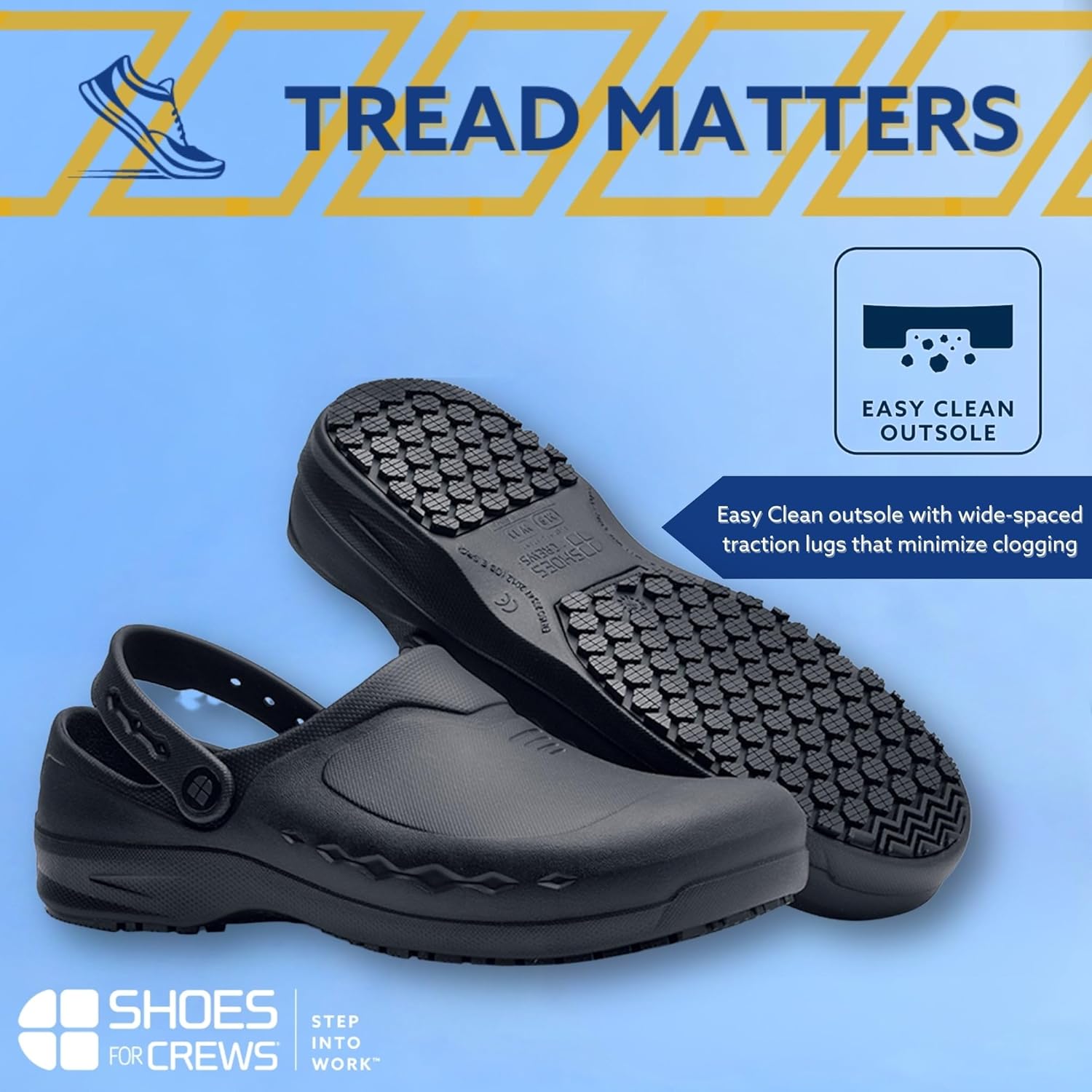 FLEX TREAD feature: Groove pattern on the outsole that provides comfort.ZONE TRACTION: Combination of environment-specific SFC lug patterns for all-new performance outsoles.TRIPGUARD feature: Decreased trip hazard zone to allow fluid movement between slippery environments.