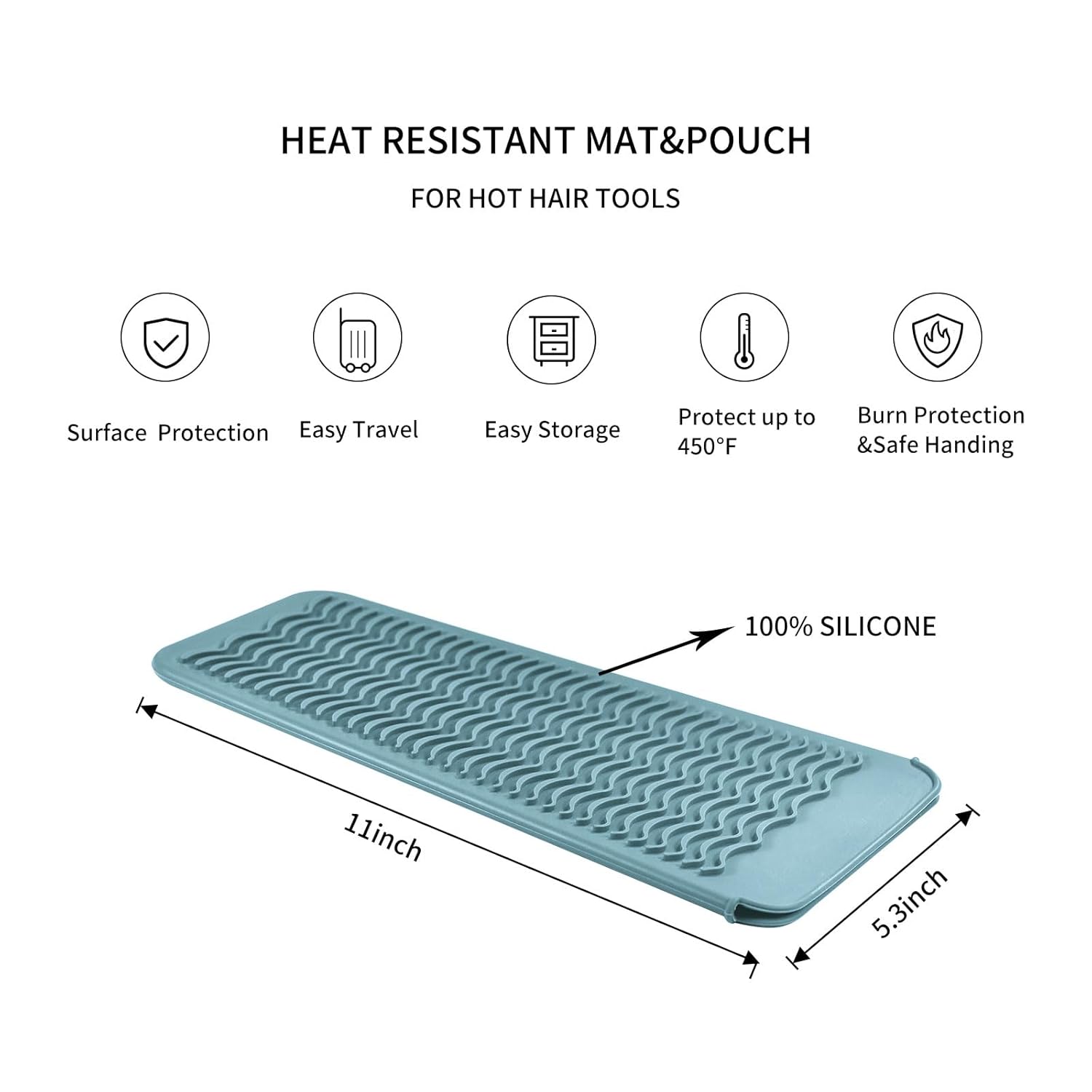 HEAT RESISTANT:Excellent heat resistant mat.Heat resistant up to 480 degrees Fahrenheit,worry-free from heat damage to your delicate surface from hot curling irons and flat irons.