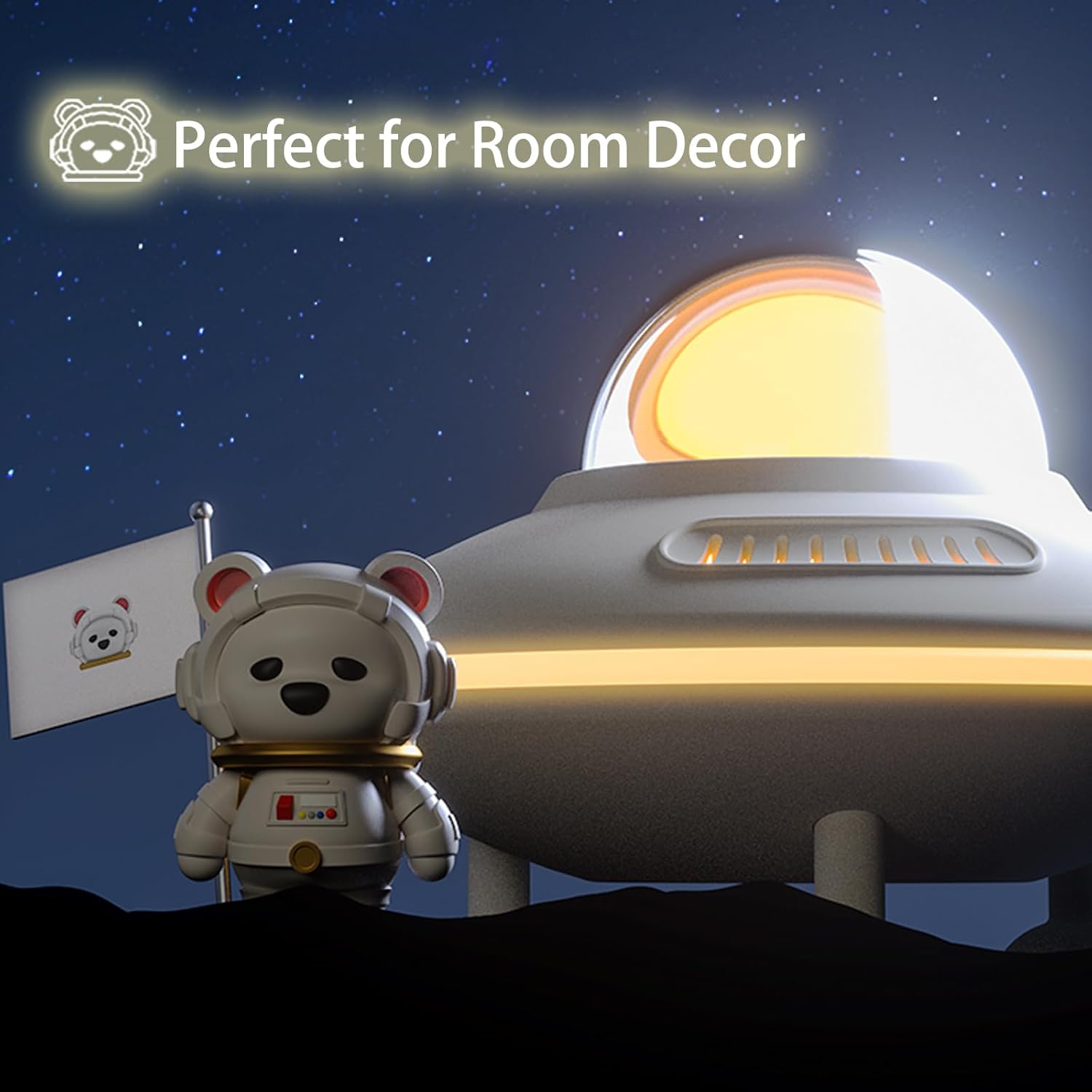 The night light wireless speaker for kids features an adorable space capsule bear design that makes cute room decor or a perfect gift.