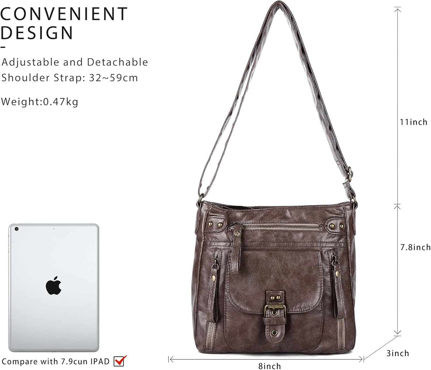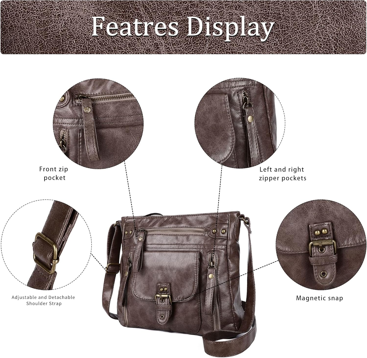 Small Crossbody Bags for Women Lady Over Shoulder Purse Hobo Tote handbag Soft Washed Leather with Multi Pocket
