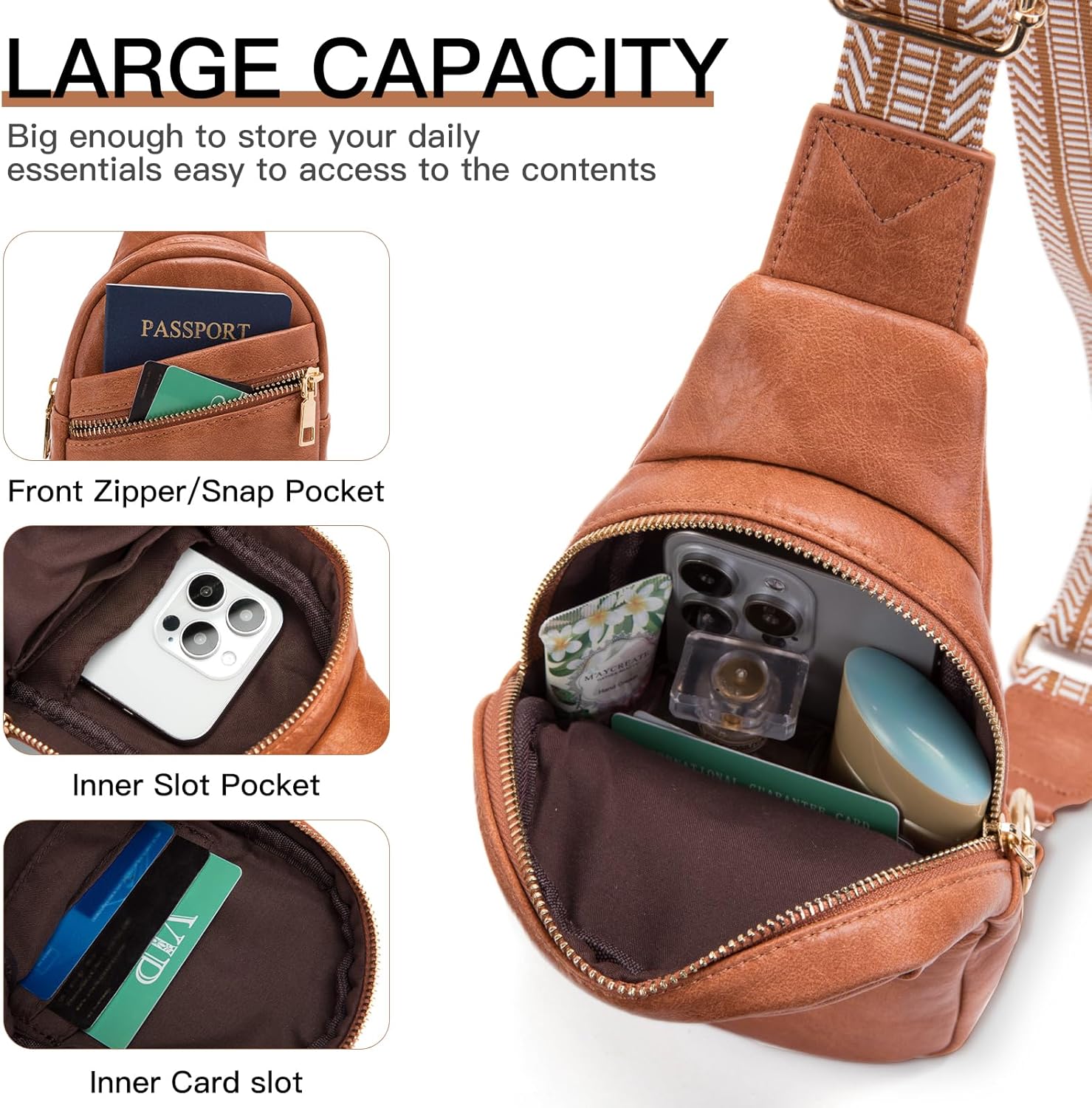 Small Sling Bag for Women Vegan Leather Crossbody Bag Purse Womens Fanny Pack Chest Bag for Women