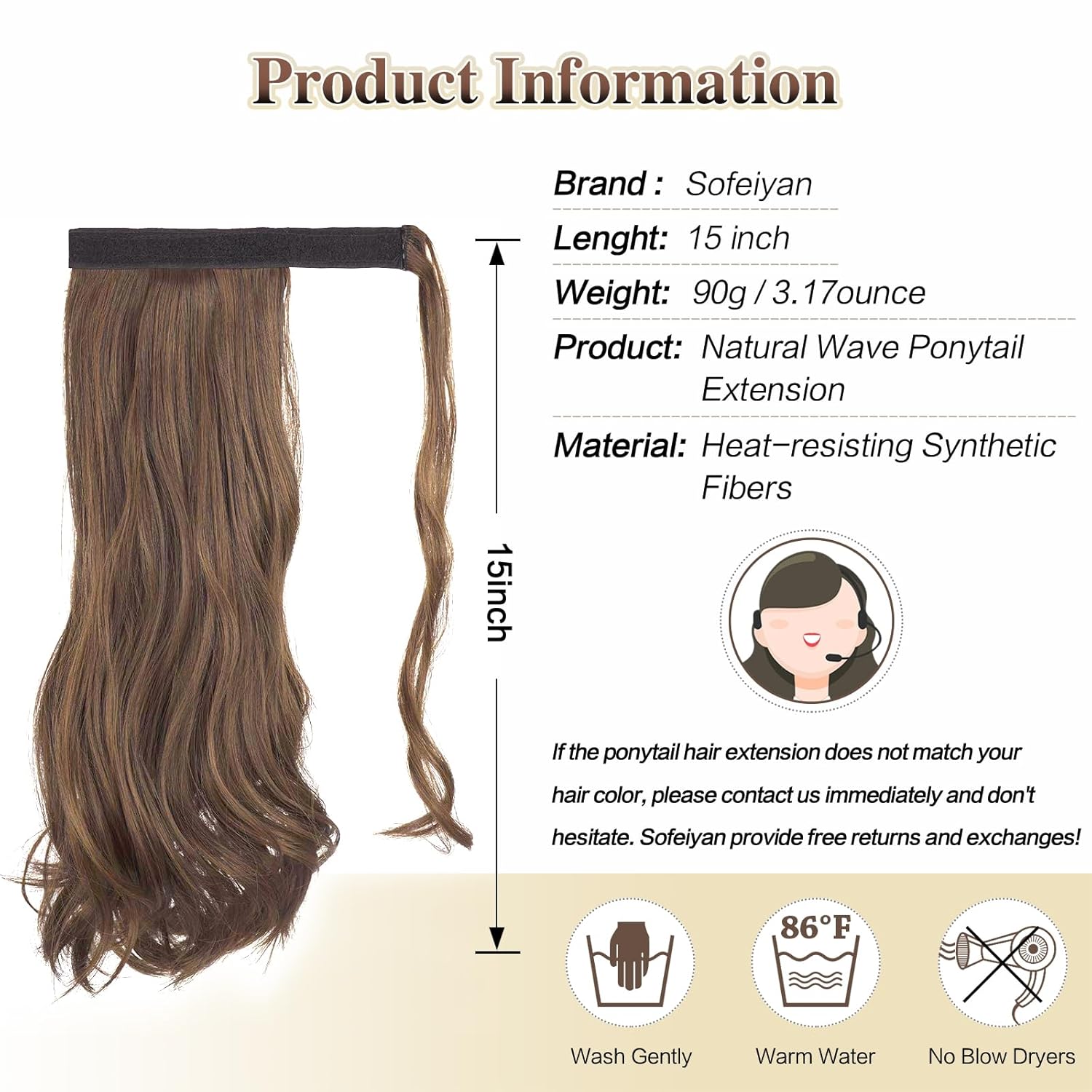 SOFEIYAN Curly Ponytail Extension 15 Inch Heat Resistant Synthetic Natural Wavy Hairpiece Wrap Around Pony Tail Hair Extensions
