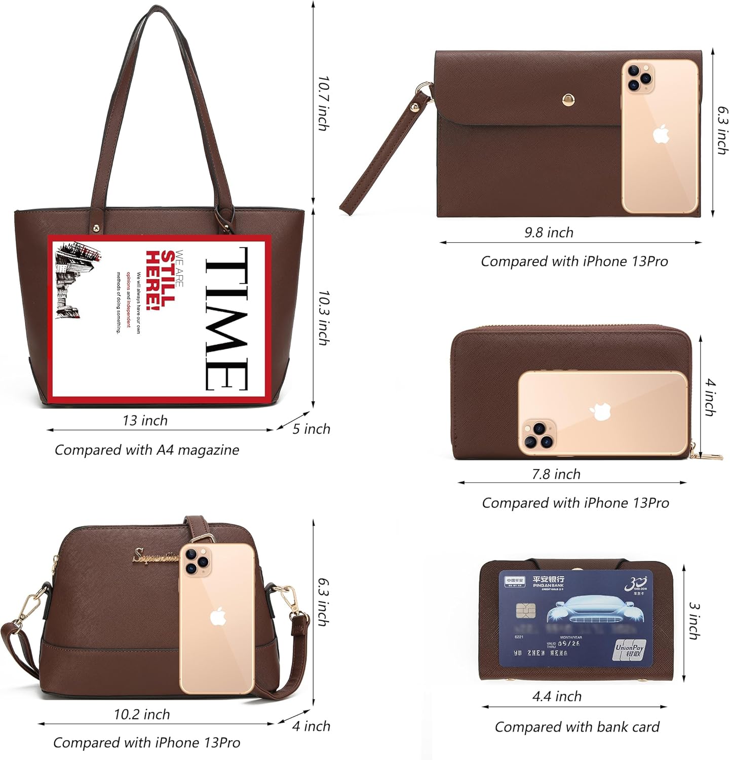 Soperwillton Handbag for Women Wallet Tote Bag Shoulder Bags Top Handle Satchel 5pcs Purse Set