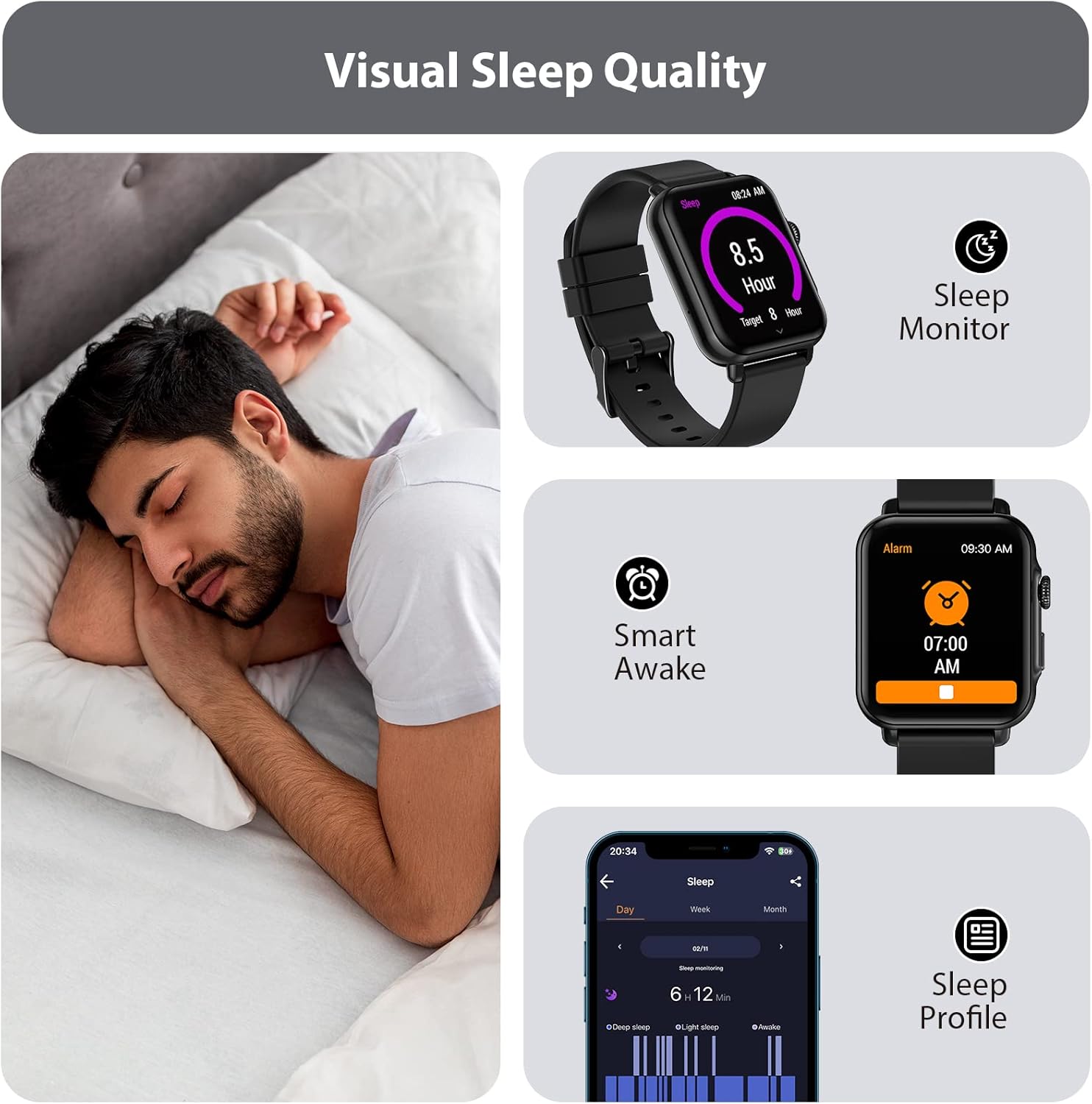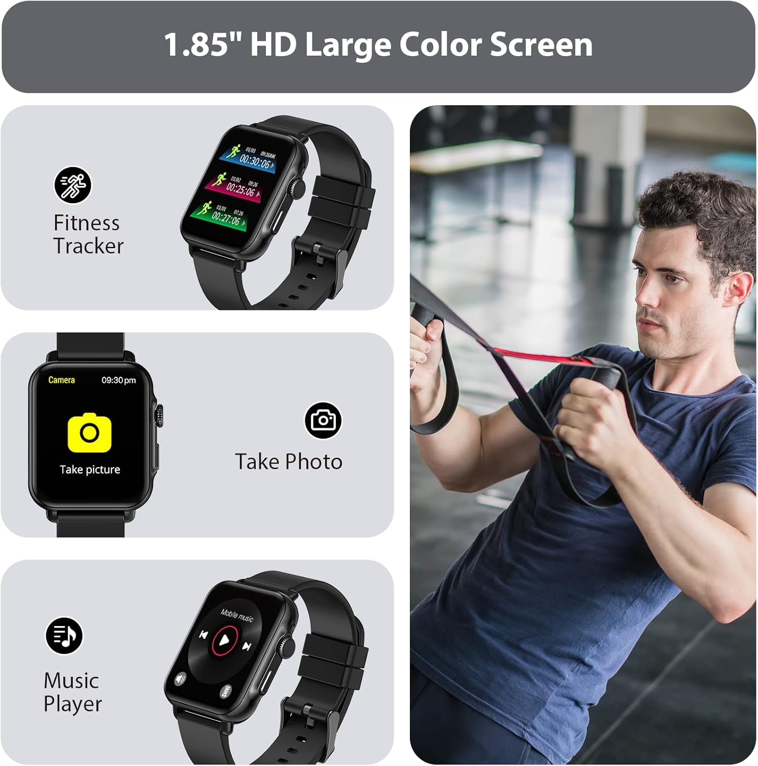 SOUYIE Smart Watch (Call Answer/Dial) for Men Women, 1.85″ HD Display Blood Pressure Blood Oxygen Heart Rate Sleep Monitor,IP68 Waterproof Fitness Tracker Pedometer for Android and iOS Phone