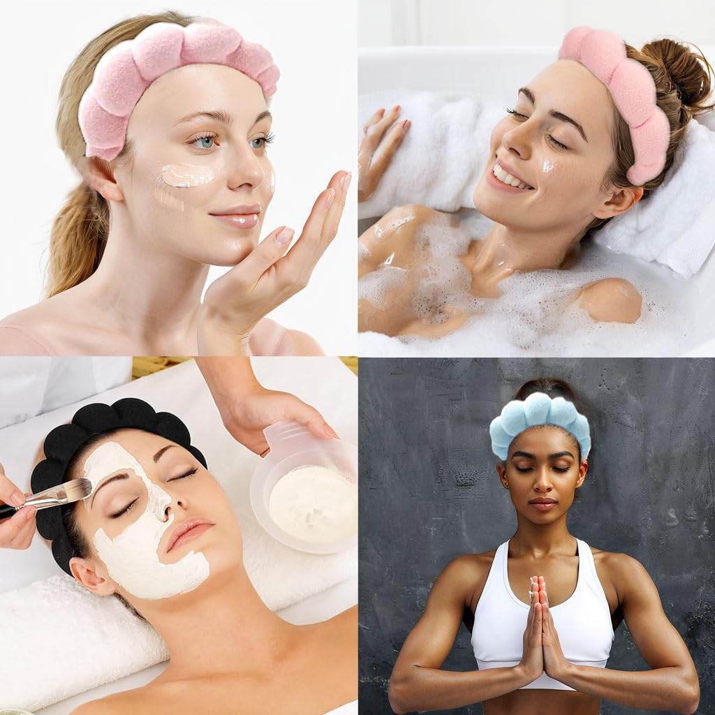 【Spa Headband and Face Scrubber Material 】The spa headband and face scrubber are the perfect combination. Bubble spa headband for women the sponge lining used and the terry cloth covering the surface. The face scrub brush is made of food grade silicone material, which has the advantages of being easy to clean, quick-drying, no residue, and no deformation.