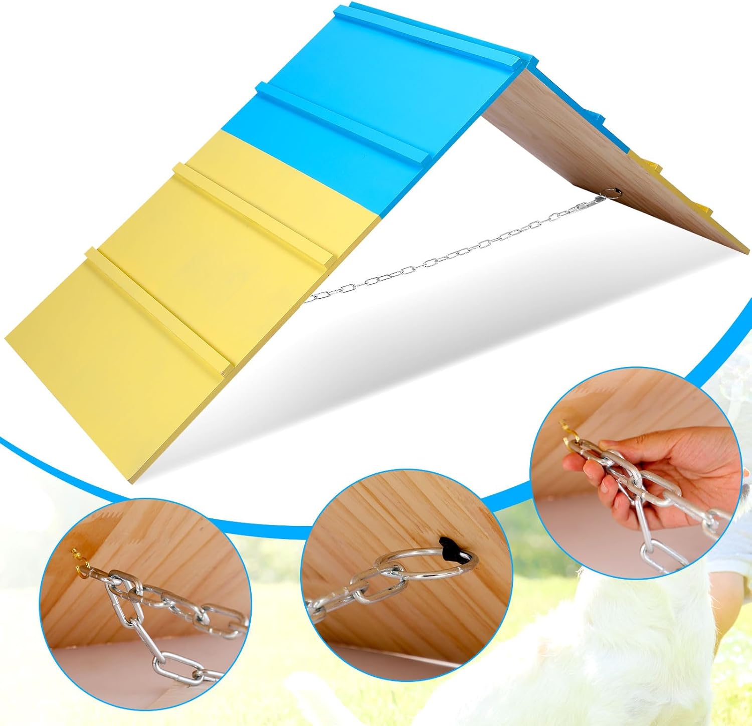 Adjustable and Convenient Design: featuring a lock chain at the bottom, our agility training equipment for dogs can be adjusted to different angles, a function that allows you to customize the training level based on your pet