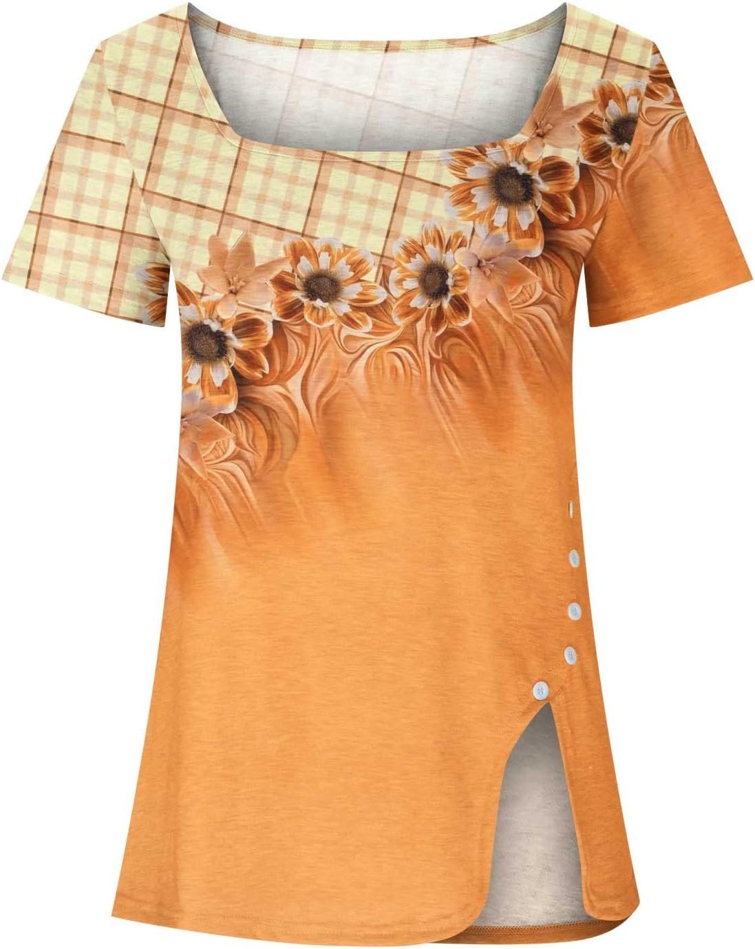 Square Neck Tops for Women Retro Floral Print Split Tee Short Sleeve Tunic Tshirt Summer Dressy Casual Ladies Blouses