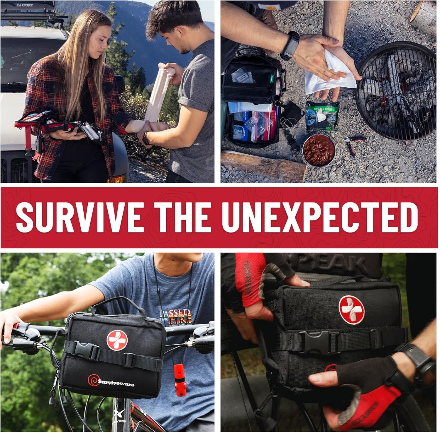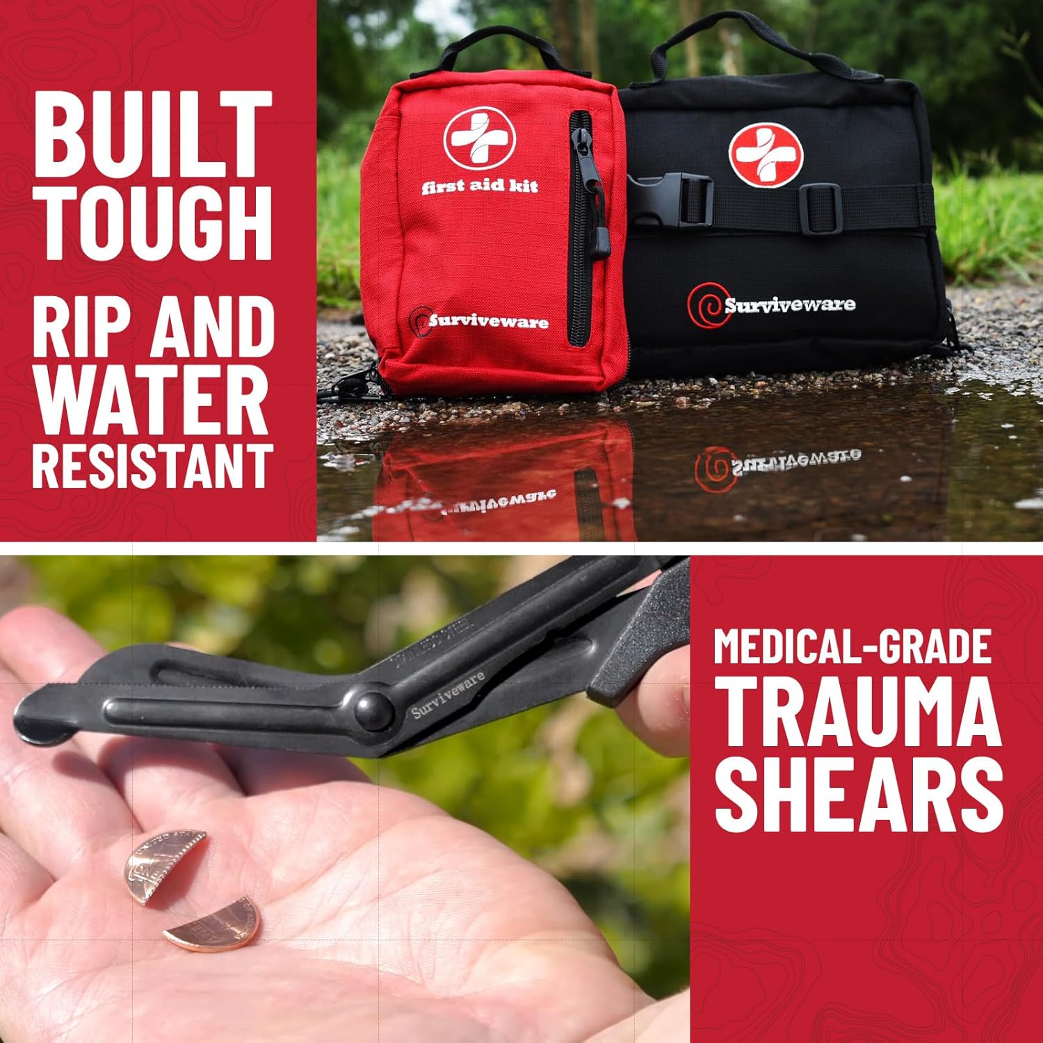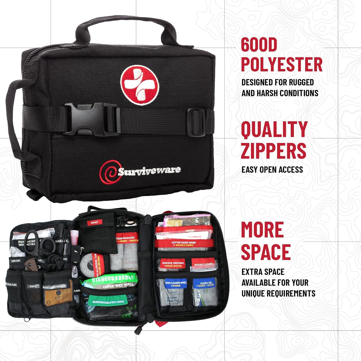 Surviveware Comprehensive Premium Survival First Aid Kit Emergency Medical Kit for Travel Camping Gear, Home Essentials and Outdoor Emergencies – Medium, Black