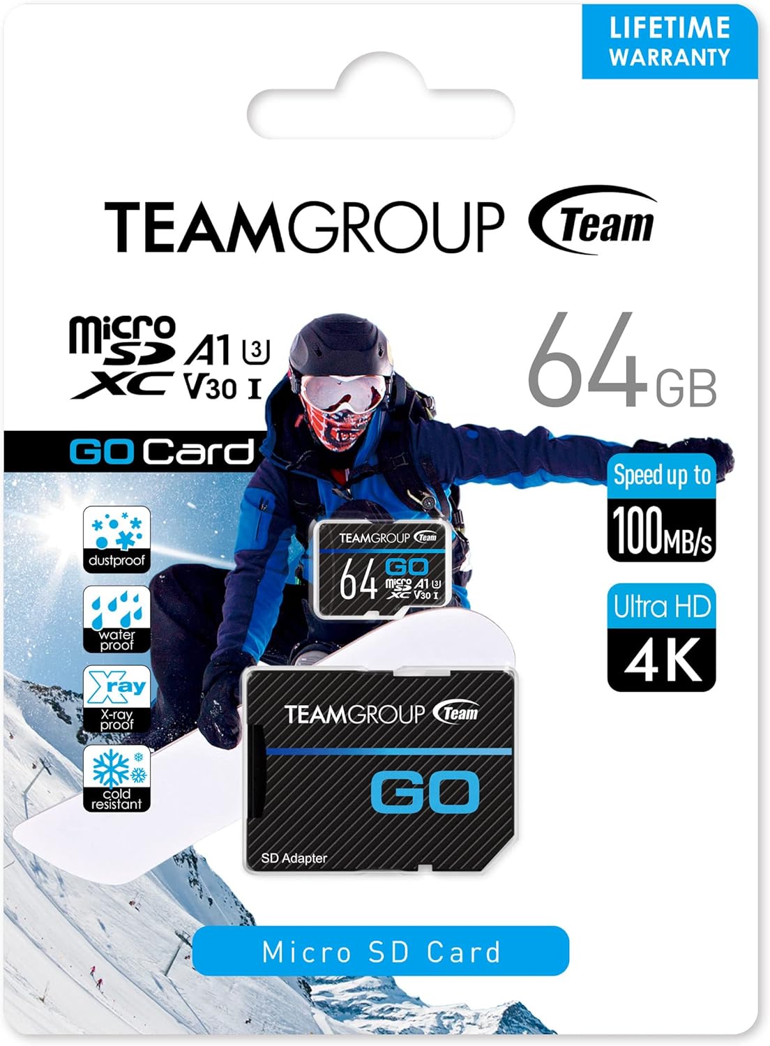 TEAMGROUP GO Card 64GB x 3 Pack Micro SDXC UHS-I U3 V30 4K for GoPro & Drone & Action Cameras High Speed Flash Memory Card with Adapter for Outdoor Sports, 4K Shooting, Nintendo-Switch TGUSDX64GU362