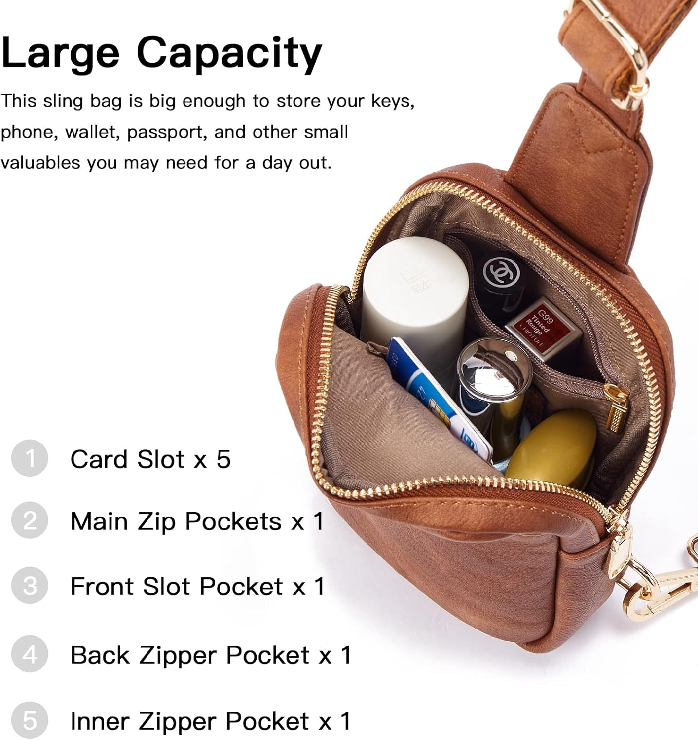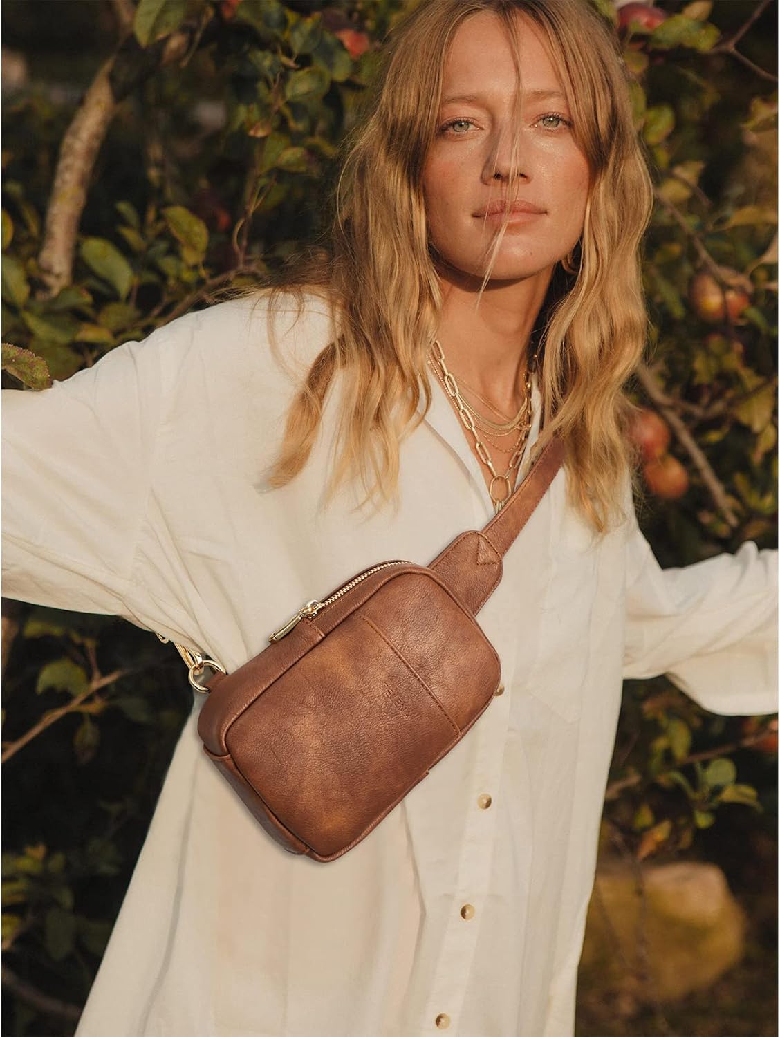 Telena Small Sling Bag for Women Leather Crossbody Fanny Packs Chest Bag for Women
