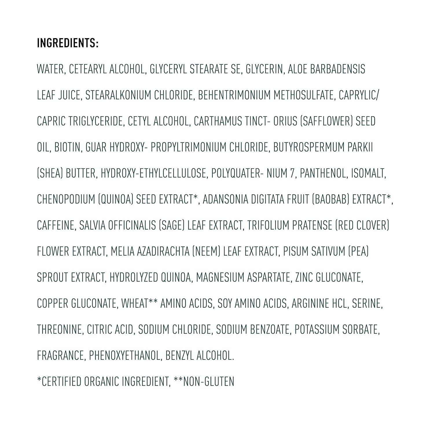 Start with the Strengthening Shampoo formulated with organic quinoa, baobab, and biotin to cleanse your way to healthy volume. Then harness the restorative powers of organic quinoa, neem leaf, and vegan keratin in our Repairing Conditioner to nourish and repair strands. Follow with Root Lifting Serum to build volume, and the Nourishing Daily Tonic to maintain a healthy scalp.
