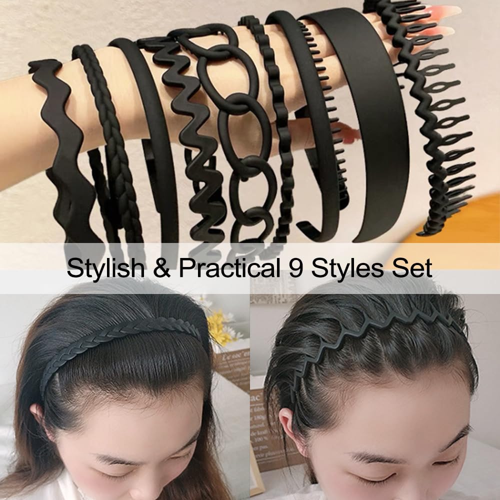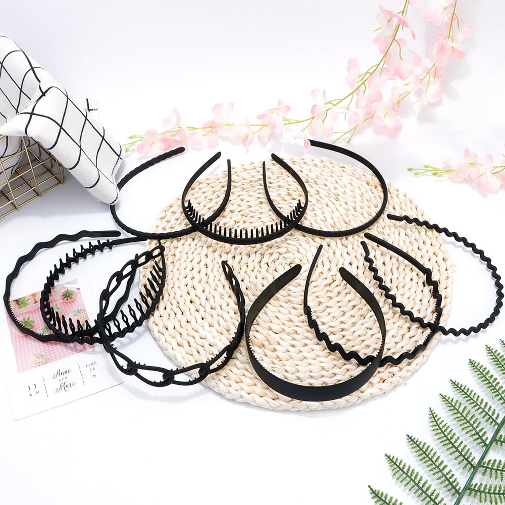TOBATOBA 9Pcs Black Plastic Headbands, Hairbands for Women’s Hair, Thin Headbands Comb Hair Accessories for Women Girls