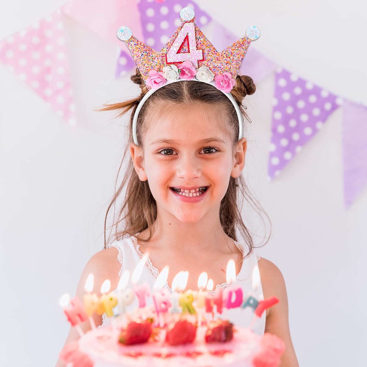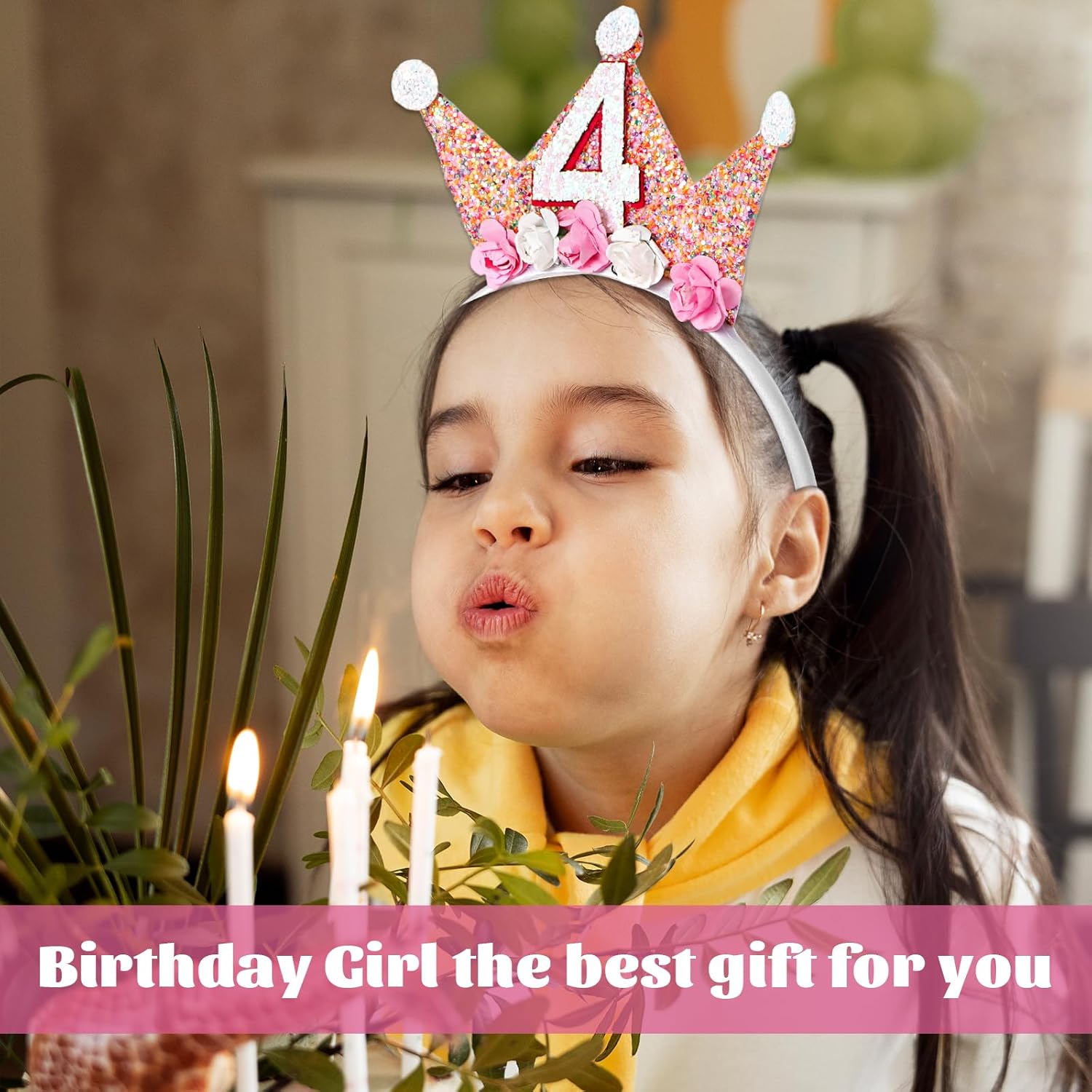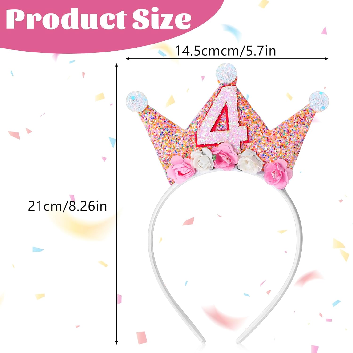 Toddler Birthday Crown, Birthday Girl Crown Headband 2nd to 6th Birthday Crown for Girls, Princess Tiara, Flower Tiara Headbands for Birthday Girls (4th Birthday Headband)