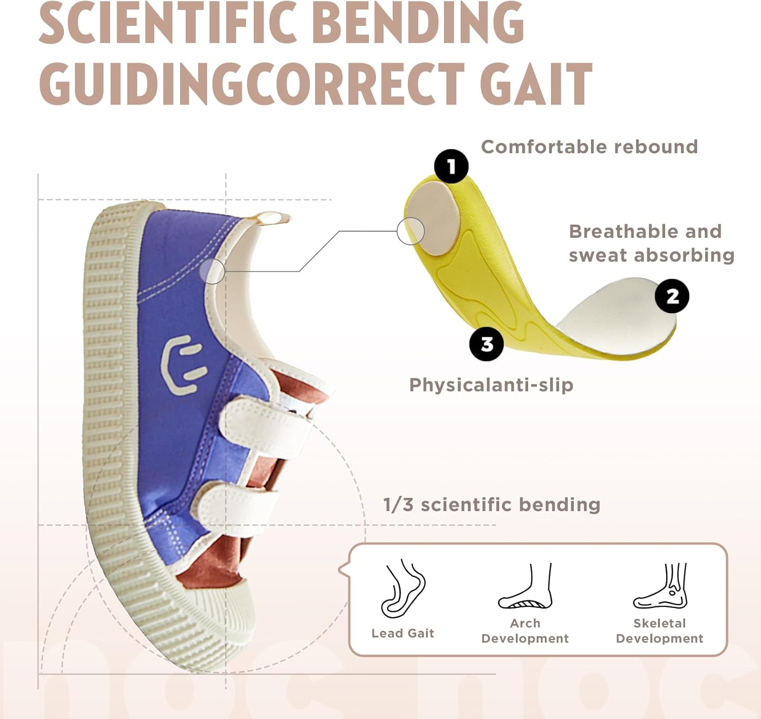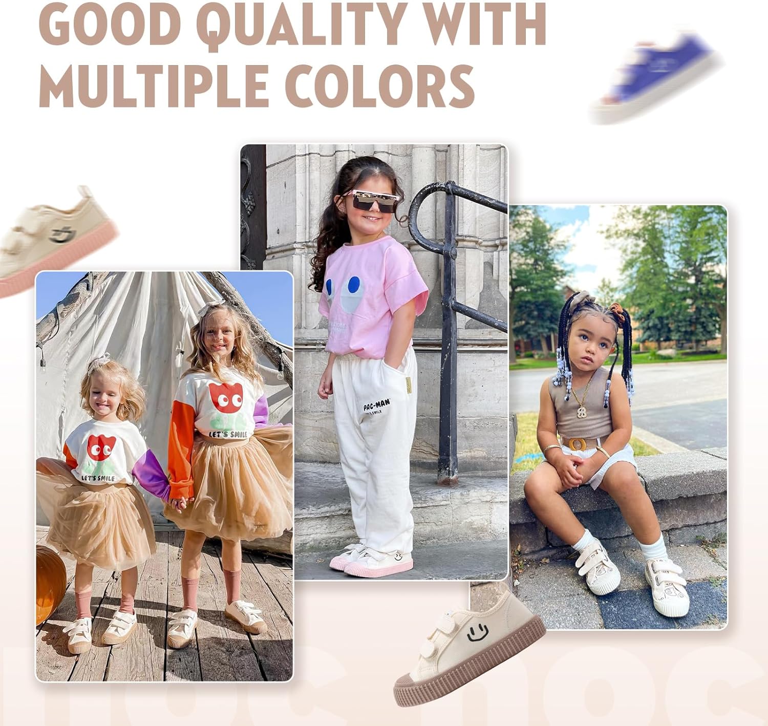 Toddler Shoes for Boys & Girls, Canvas Velcro Sneakers with Candy-Colored Sole Size 6-14