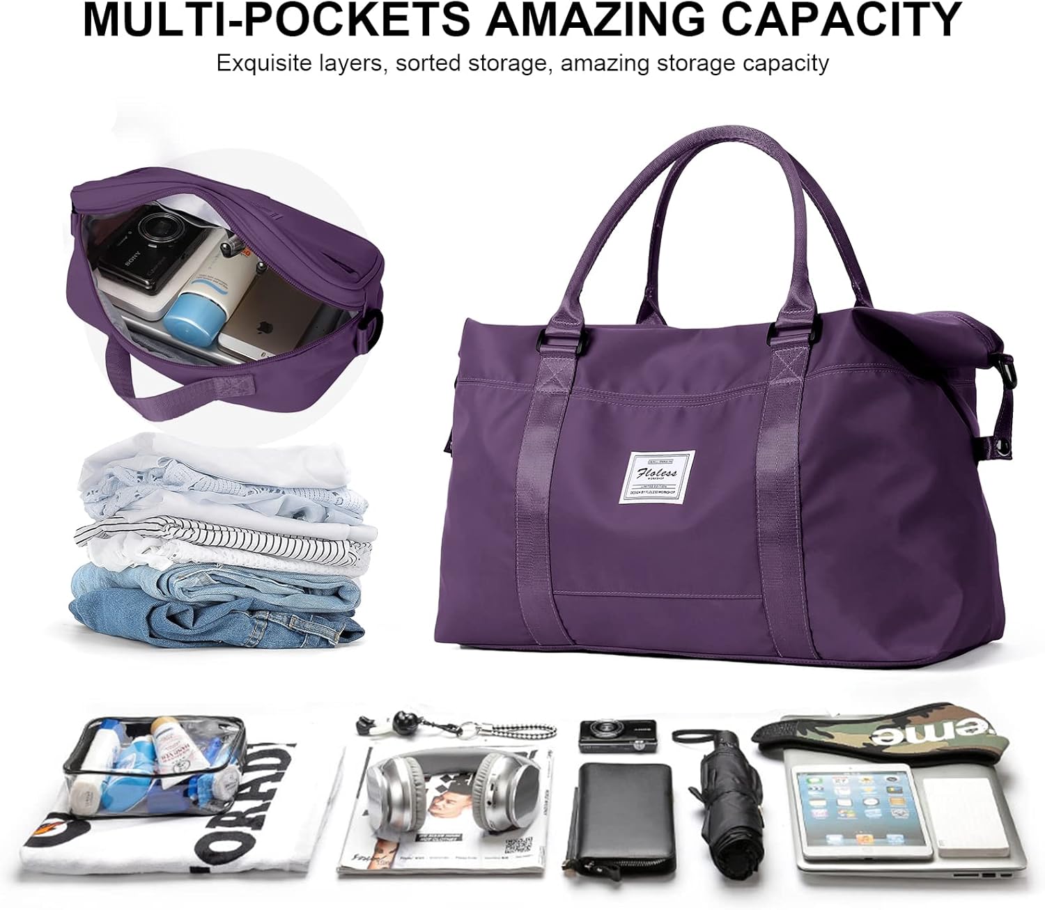 Well-Organized Travel Tote: This travel bag is clever designed incorporates six internal and two external pockets, offering ample storage space and ensuring that your travel items – from clothing to toiletries – has its designated place