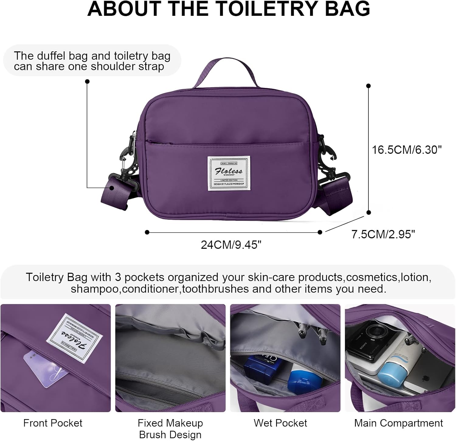 Travel Duffel Bag with Toiletry Bag, Sports Tote Gym Bag, Shoulder Weekender Overnight Bag for Women, Dark Purple