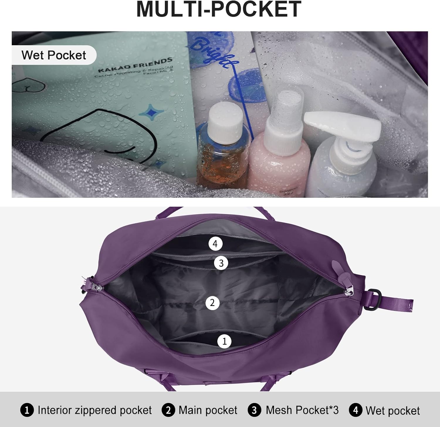 Perfect size travel bag with large capacity, wet pocket, luggage sleeve and other convenient travel design.