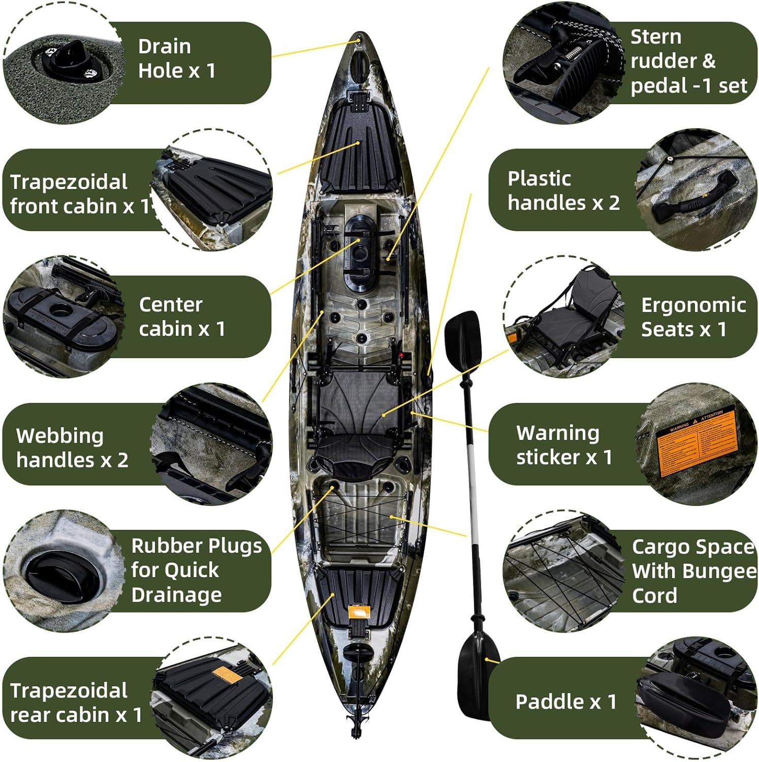 Ultimate 12-Foot Fishing Kayak with Spacious Storage, Sit-On-Top Design, and Construction – Ideal for Fishing Adventures, Supports up to 325 lbs