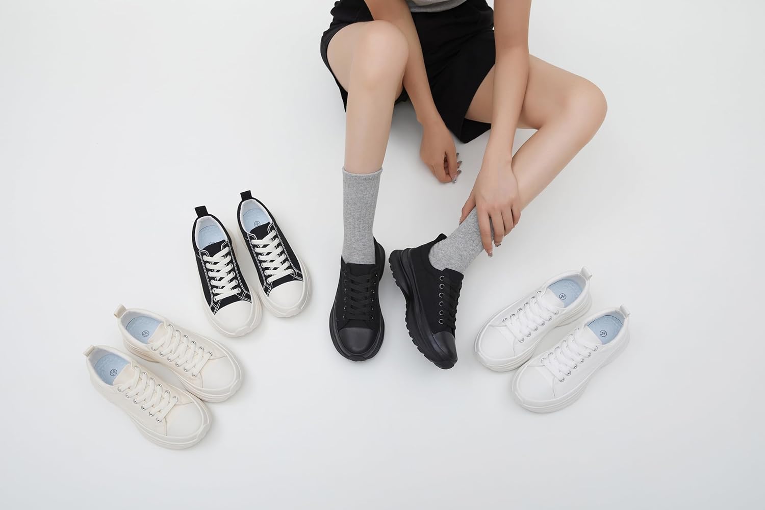 Uoidru Platform Sneakers for Womens Low Top Canvas Shoes for Womens Fashion Sneakers lace up Walking Tennis Shoes