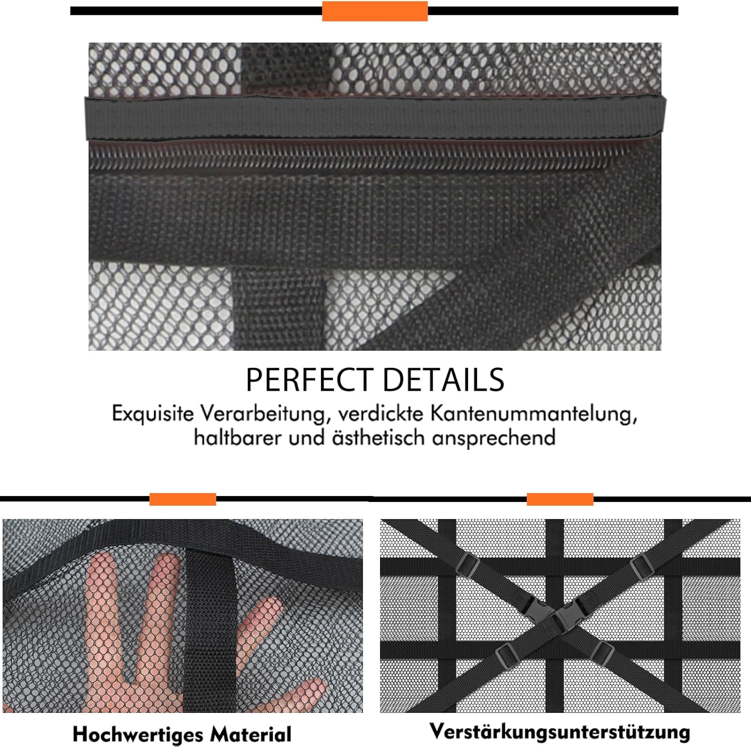 CROSS FIXATION FOR GREATER STABILITY: The roof cargo net adopts 9 sturdy reinforcement straps, which are cross fixed to provide strong support and better secure objects, effectively preventing them from sagging or falling off. Please do not obstruct the rearview mirror to ensure driving safety. Double mesh design, soft texture, good breathability and durability, easy to wear and clean.