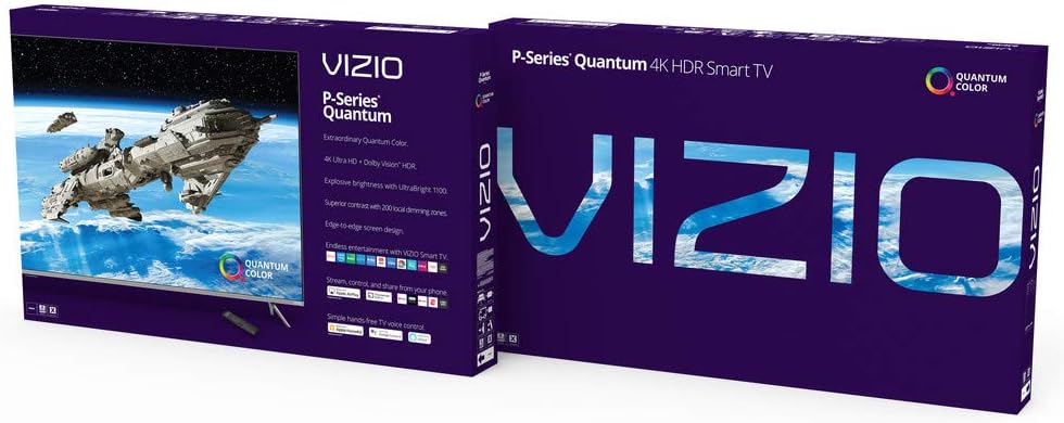 Take a quantum leap forward in picture quality. The VIZIO P Series Quantum 75” Class (74. 5” diag. ) 4K HDR Smart TV delivers the ultimate home entertainment experience: cinematic quantum dot colors, extraordinary clarity, and deep, inky blacks. Powered by VIZIO’s next generation quantum dot technology, the all new P Series Quantum delivers over a billion shades of color, transporting you to new worlds with up to 115 percent more color. Dolby Vision HDR with Ultra Bright 1200 brings remarkable detail, depth and brightness to every scene. And with a powerful Active Full Array backlight with 240 local dimming zones, you’ll see a striking contrast, even in the darkest scenes — in short, you’ll experience scenes just as the director intended. VIZIO’s Smart Cast is the one stop smart TV solution that brings you more of the entertainment you love, thanks to Apple Airplay 2 support and Chromecast Built in. With Apple Airplay, use your iPhone, iPad or Mac to stream movies, shows, music, and photos from iTunes, Apple TV and other Airplay compatible apps to the TV. Browse favorites like Netflix and Hulu right on the TV or enjoy free and unlimited TV from over 150 channels with VIZIO Watch Free . Streaming, controlling, and sharing has never been easier — no extra streaming devices or remotes needed. And every P Series Quantum makes a great smart home companion, with voice control support for Siri, Google Assistant, and Alexa. Power on your TV, stream apps, and much more with simple hands free voice control. Discover an extraordinary picture, all wrapped up in a sleek, precision crafted aluminum frame designed to create the most immersive viewing experience imaginable. Color defined as the color volume measured using Dolby’s MDC (millions of distinguishable colors) specification that factors the range of colors and luminance levels; standard 4K HDR TV features rec709 color, up to 300 nits of brightness and no local dimming.