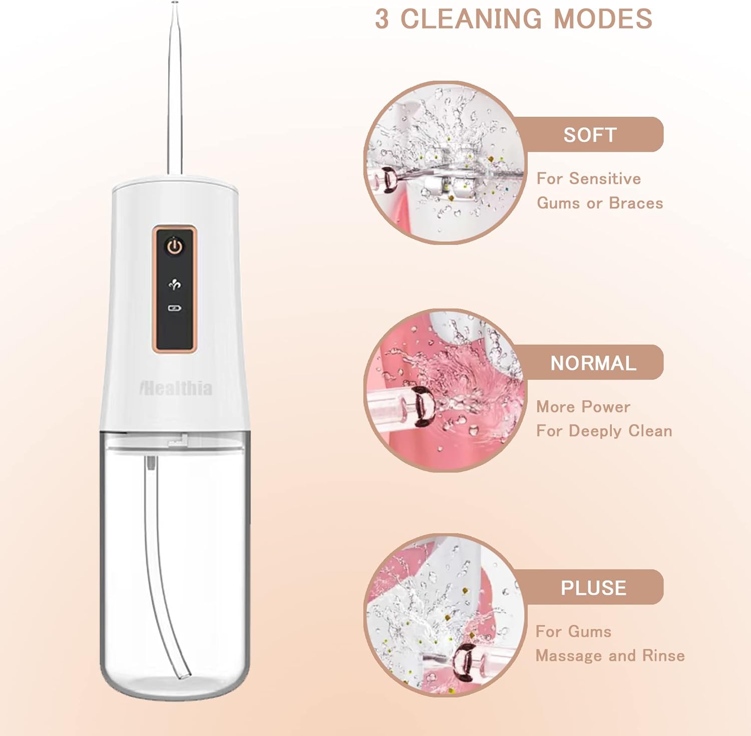 【Best Water-flossers for Teeth】IHealthia Water Flosser has three modes, four 360 ° rotating nozzles, which can further clean your teeth and braces, making your smile more confident.