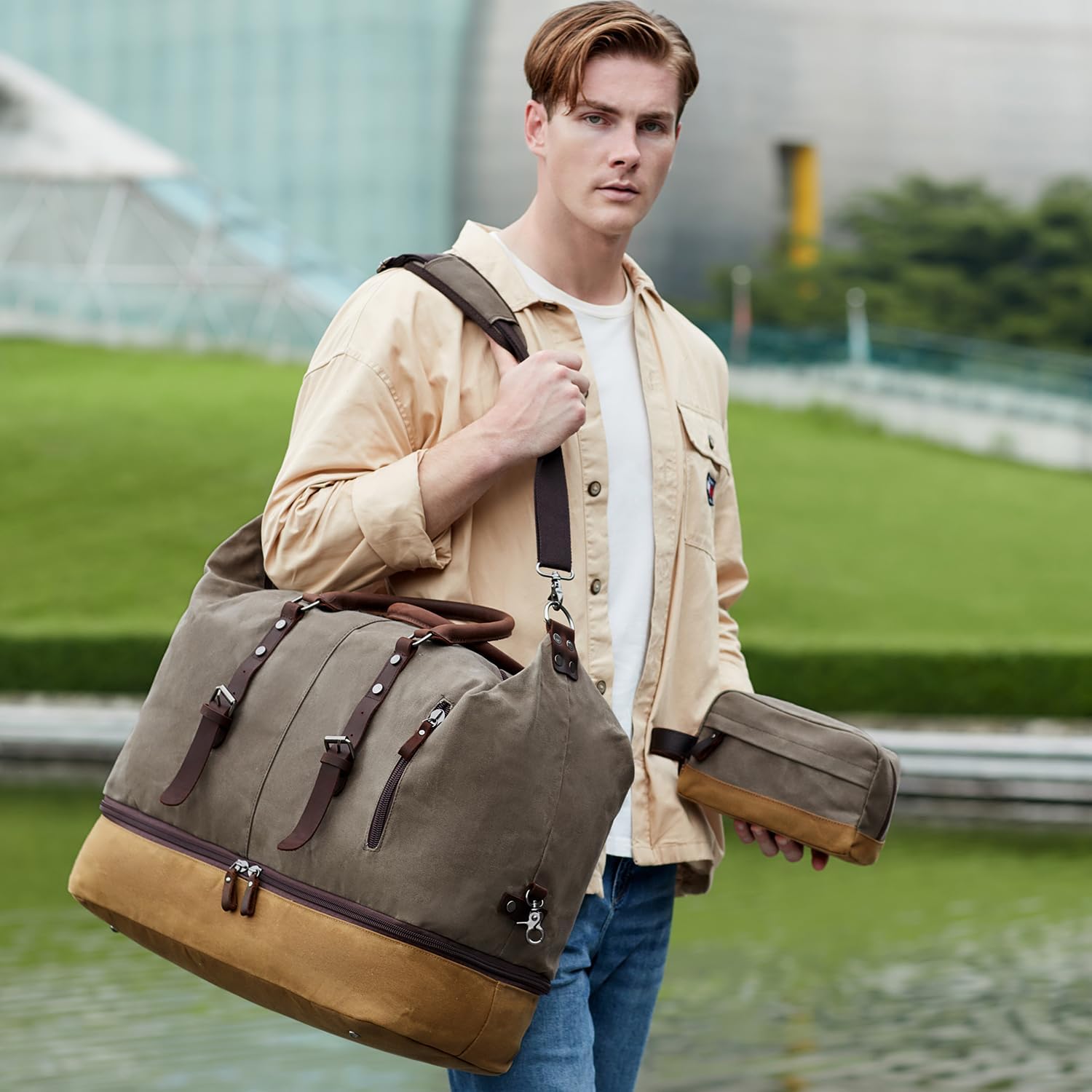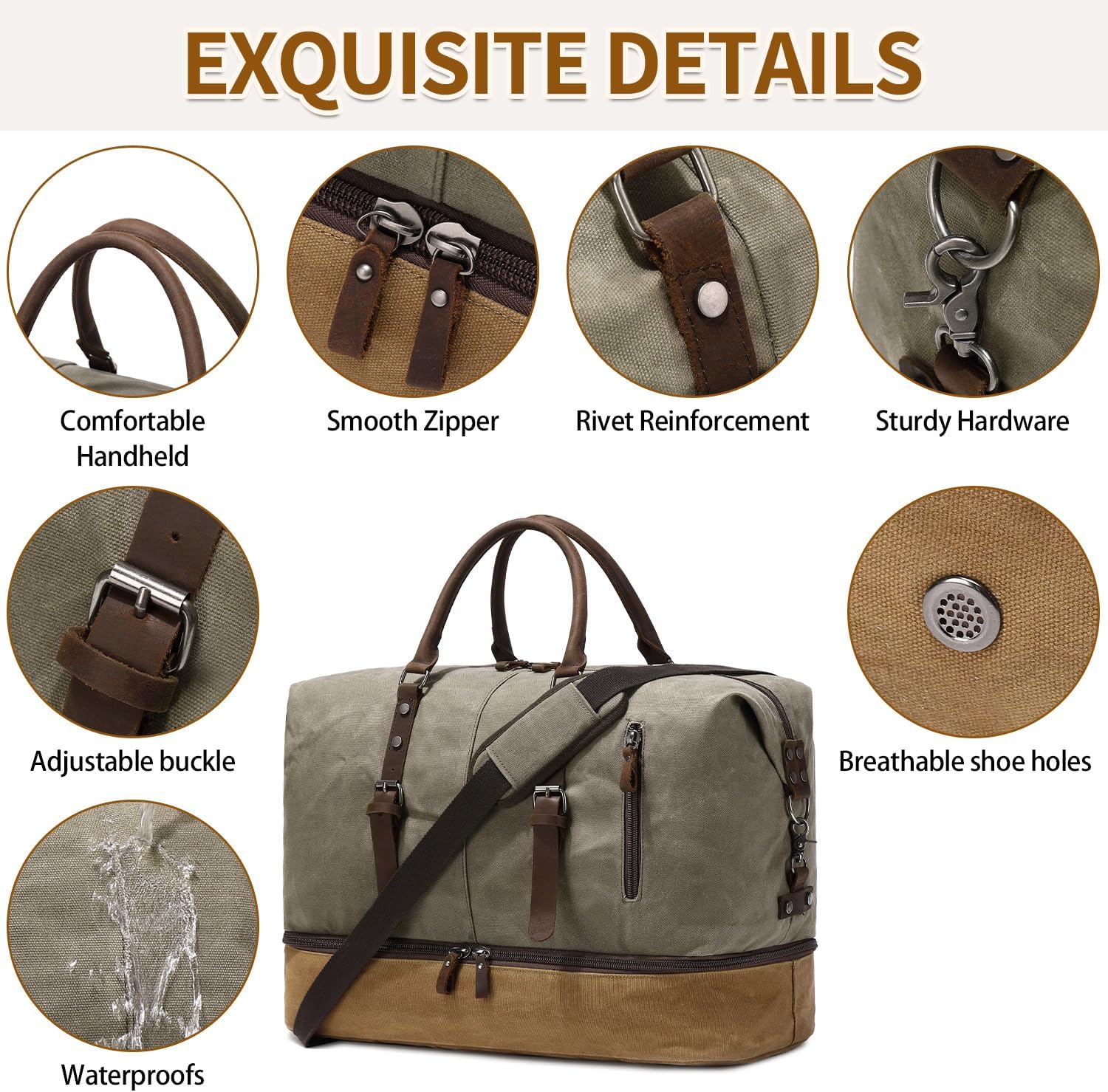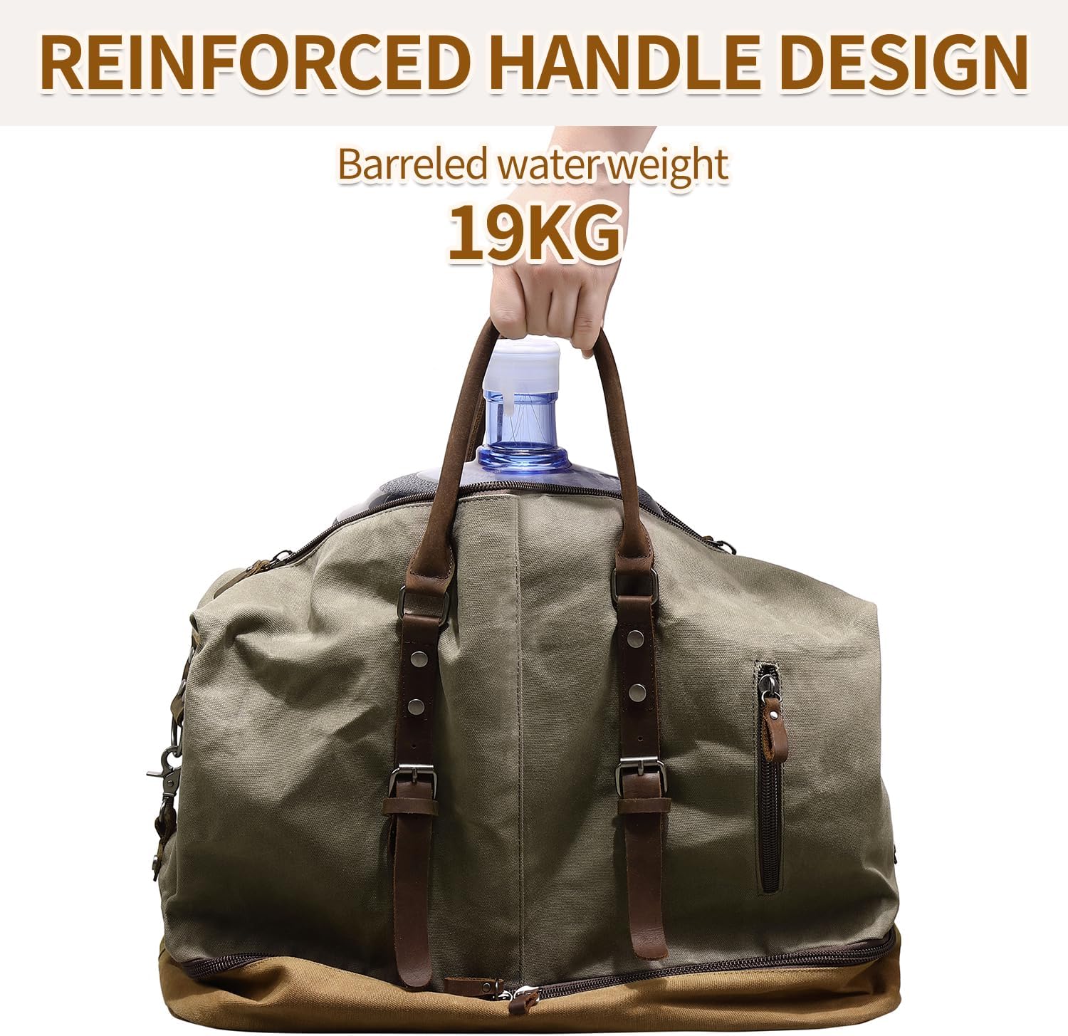 Quality Material: FENGDONG weekender bag is made of water resistant,durable waxed canvas and top quality genuine leather, it is durable in use and rich in looks, handcrafted by skilled craftsmen. 100% quality inspected before they are delivered to you.