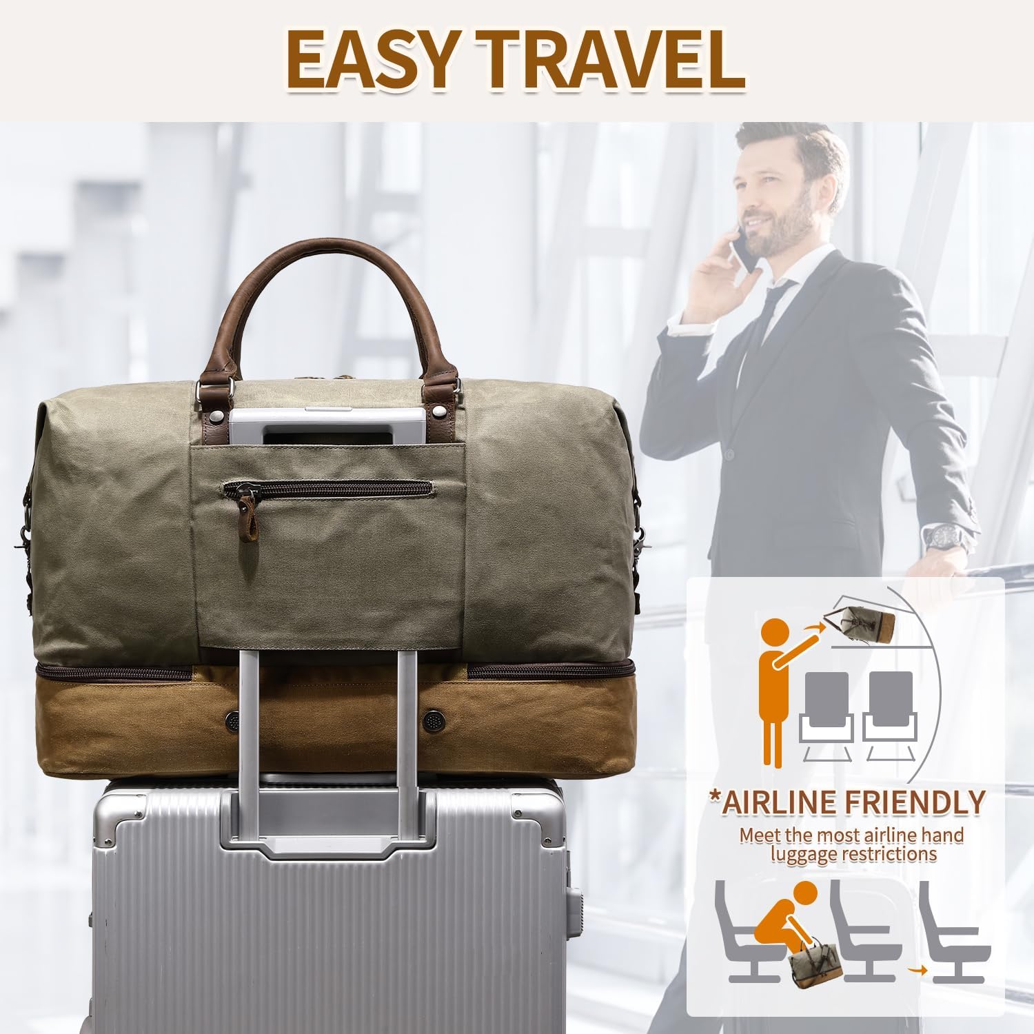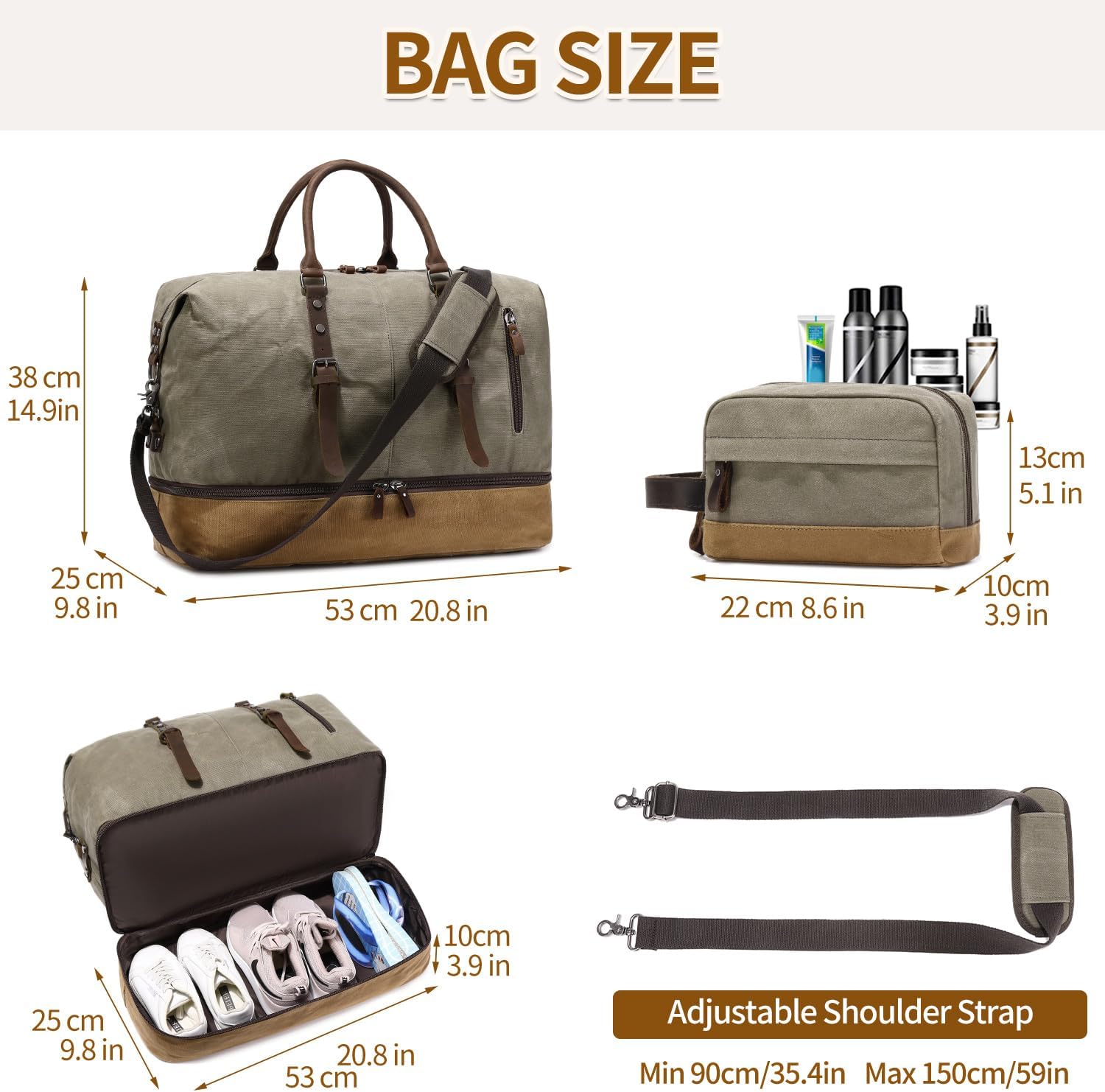 Weekender Bag Large Overnight Bag for Men Women Tote with Shoe Compartment Canvas Carry on Luggage Bag Travel Duffel Bag Green