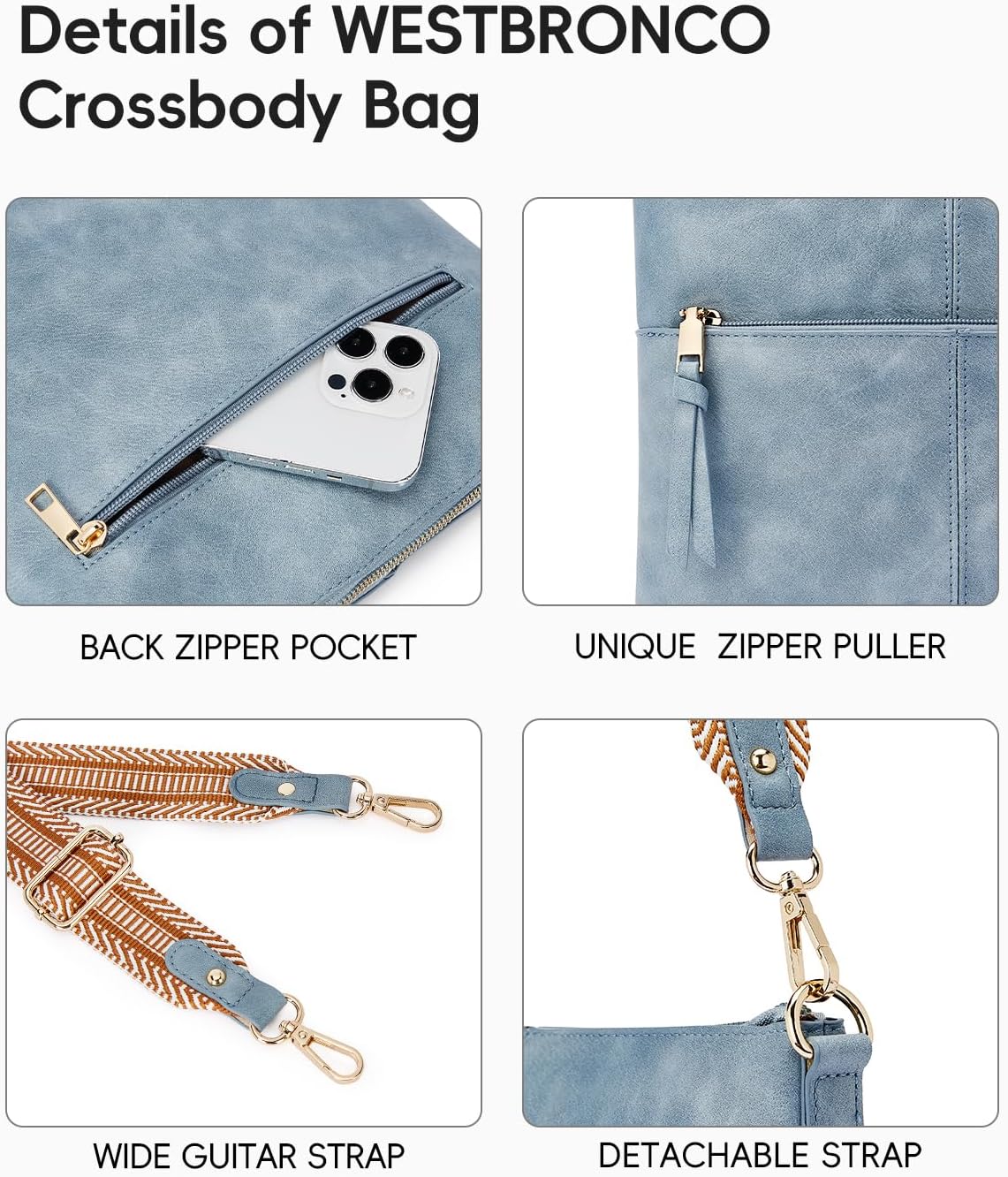 WESTBRONCO Crossbody Purses for Women Medium Shoulder Bag Vegan Leather Handbags with Guitar Strap
