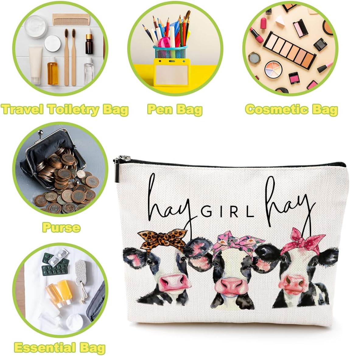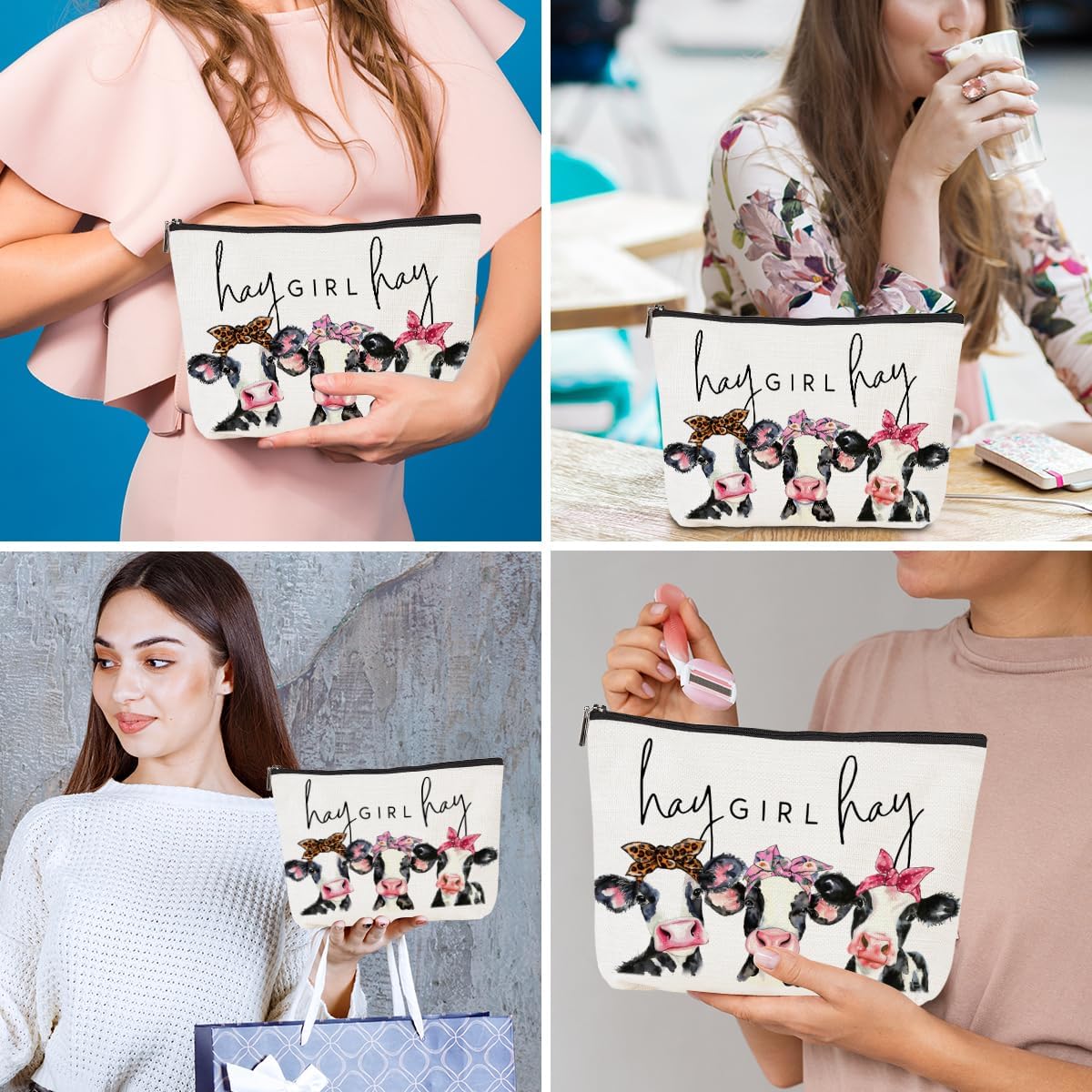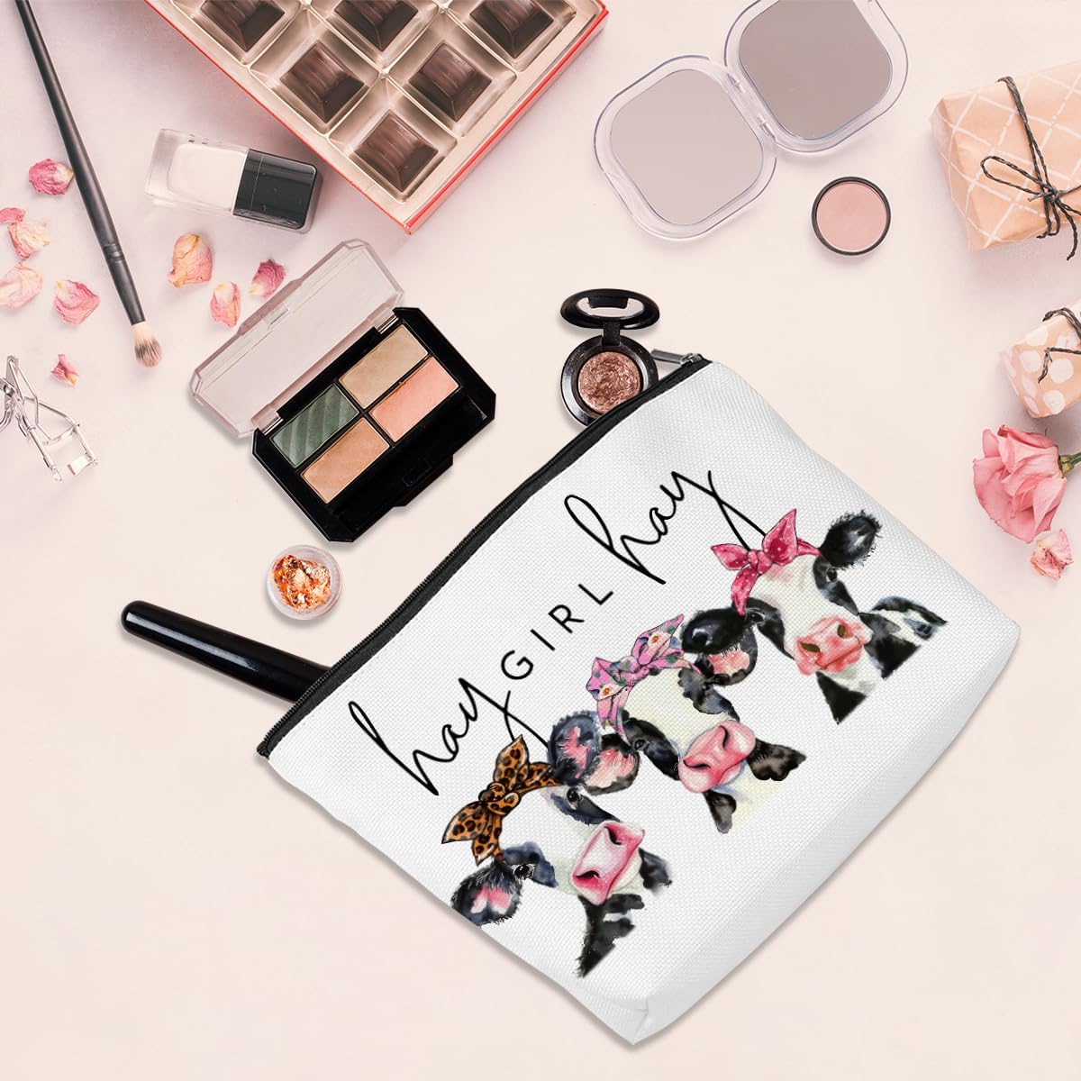 Western Makeup Bag Cosmetic Bag Funny Cow Gifts Cow Print Stuff Western Accessories Friendship Gifts for Women Friends Cow Lovers Friend Mom Western Stuff Graduation Mothers Day Birthday Christmas