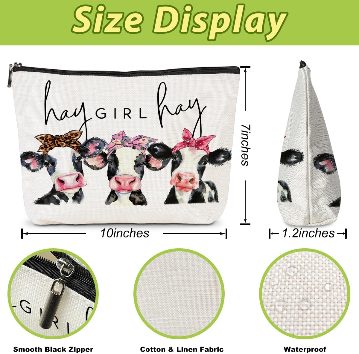 Applicable Occasions: Suitable for Valentines Day, Mothers Day, Nurse, Boss Day Christmas,Thanksgiving, graduation, retirement, birthday anniversary, wedding, girls trip, bachelorette party. Multifunctional: makeup bag, cosmetic zipper pouch, travel accessories, period bag, gift bag, travel toiletry organizer. Features: Made of cotton & linen materials, smooth black zipper, portable, reusable and large capacity cosmetic bag used for your cosmetics, lipstick, phone, sunglasses and other travel items.