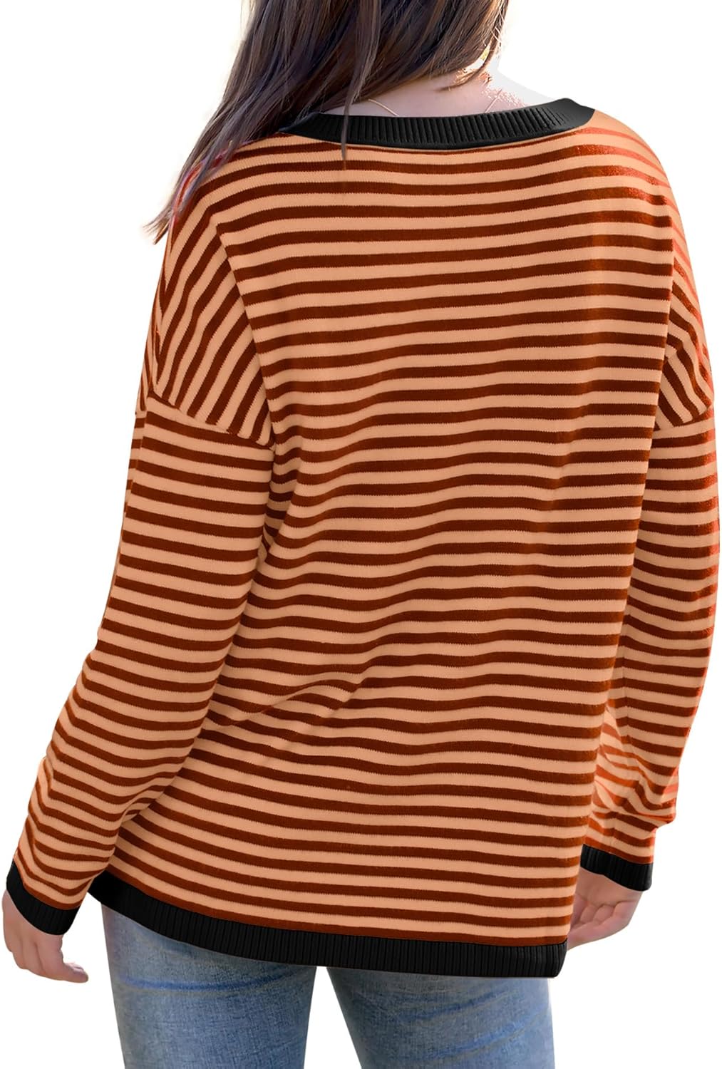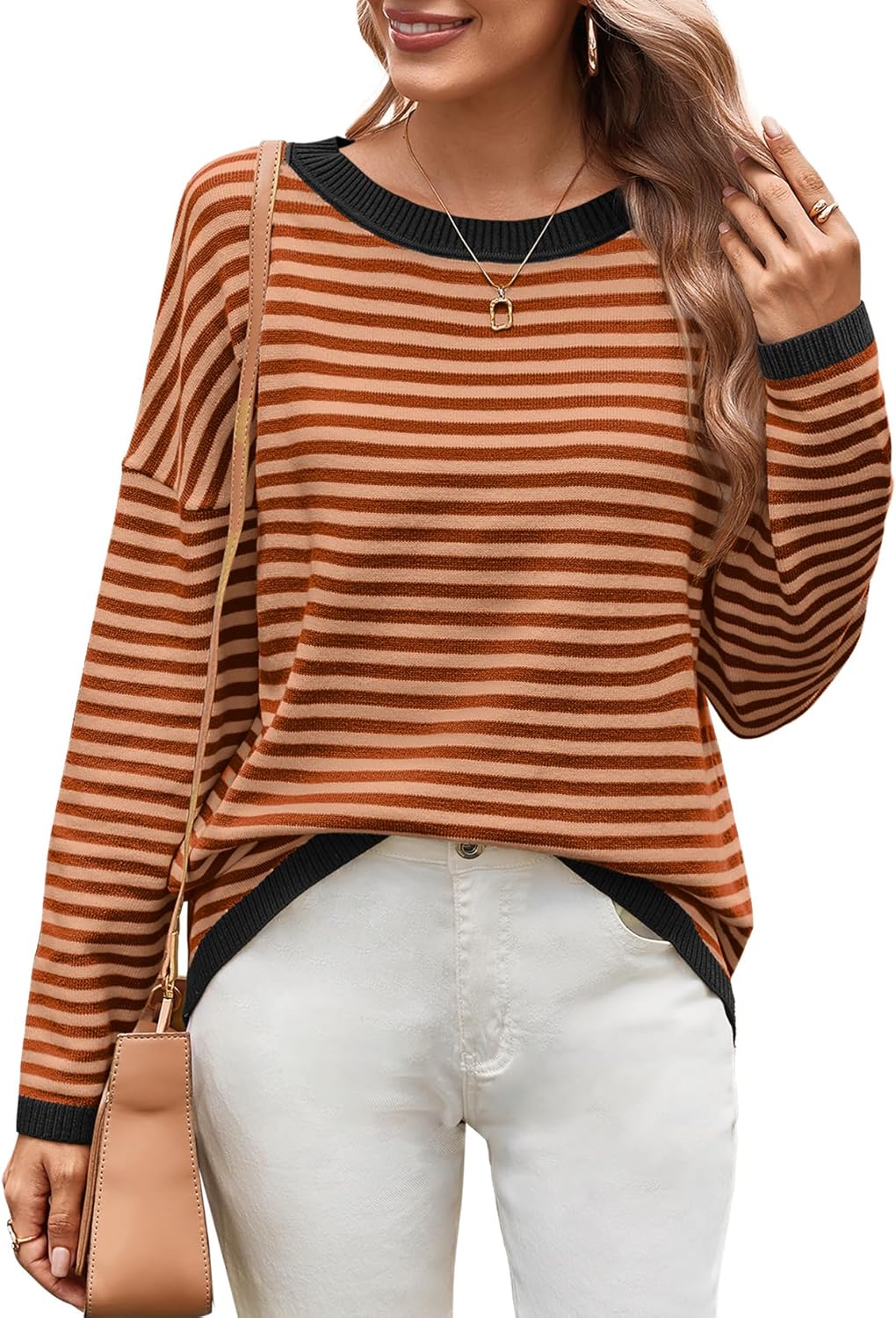 WIHOLL Womens Sweaters Dressy Casual Long Sleeve Tops Round Neck Striped Fashion