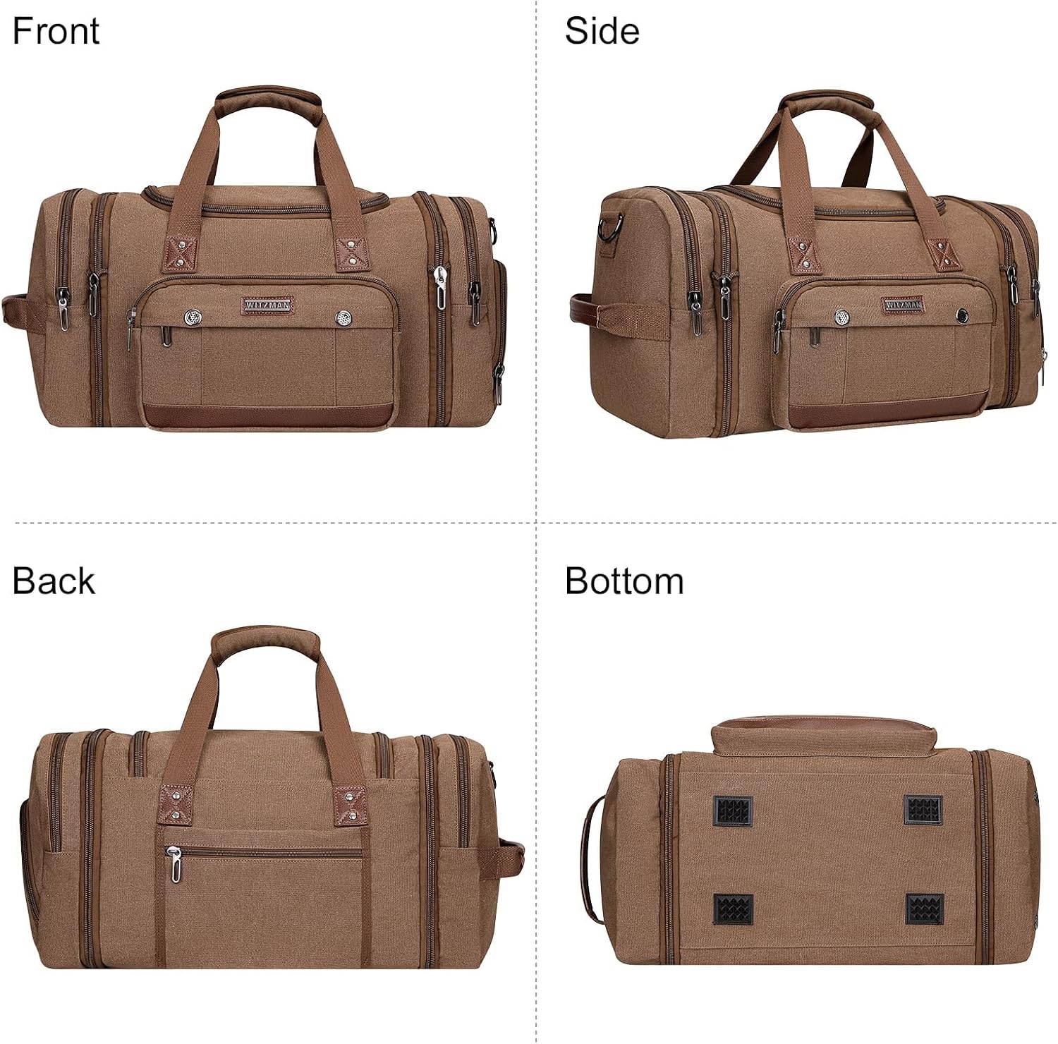 WITZMAN Mens Duffle Bags for Traveling Canvas Weekender Travel Bag Expandable Overnight Bag Carry on Bag(A8007 Brown)