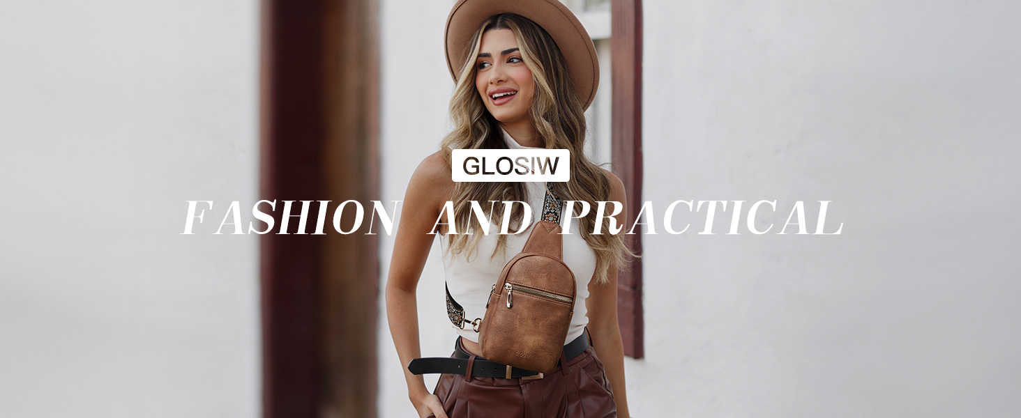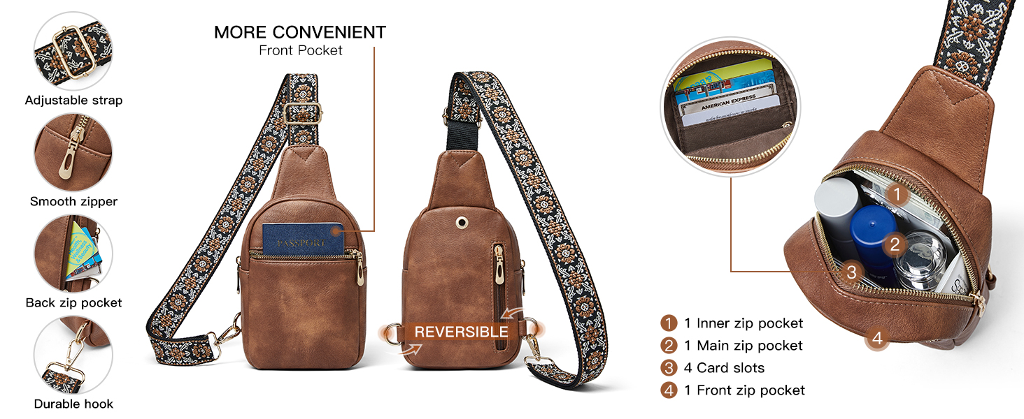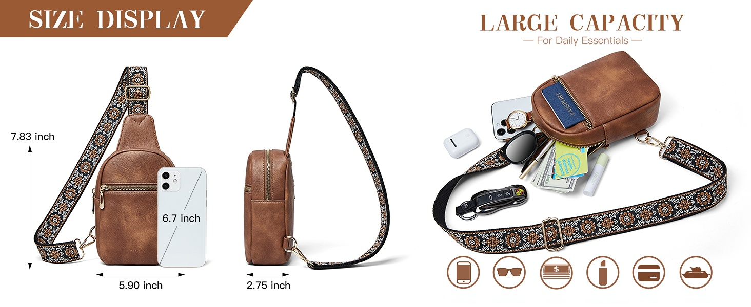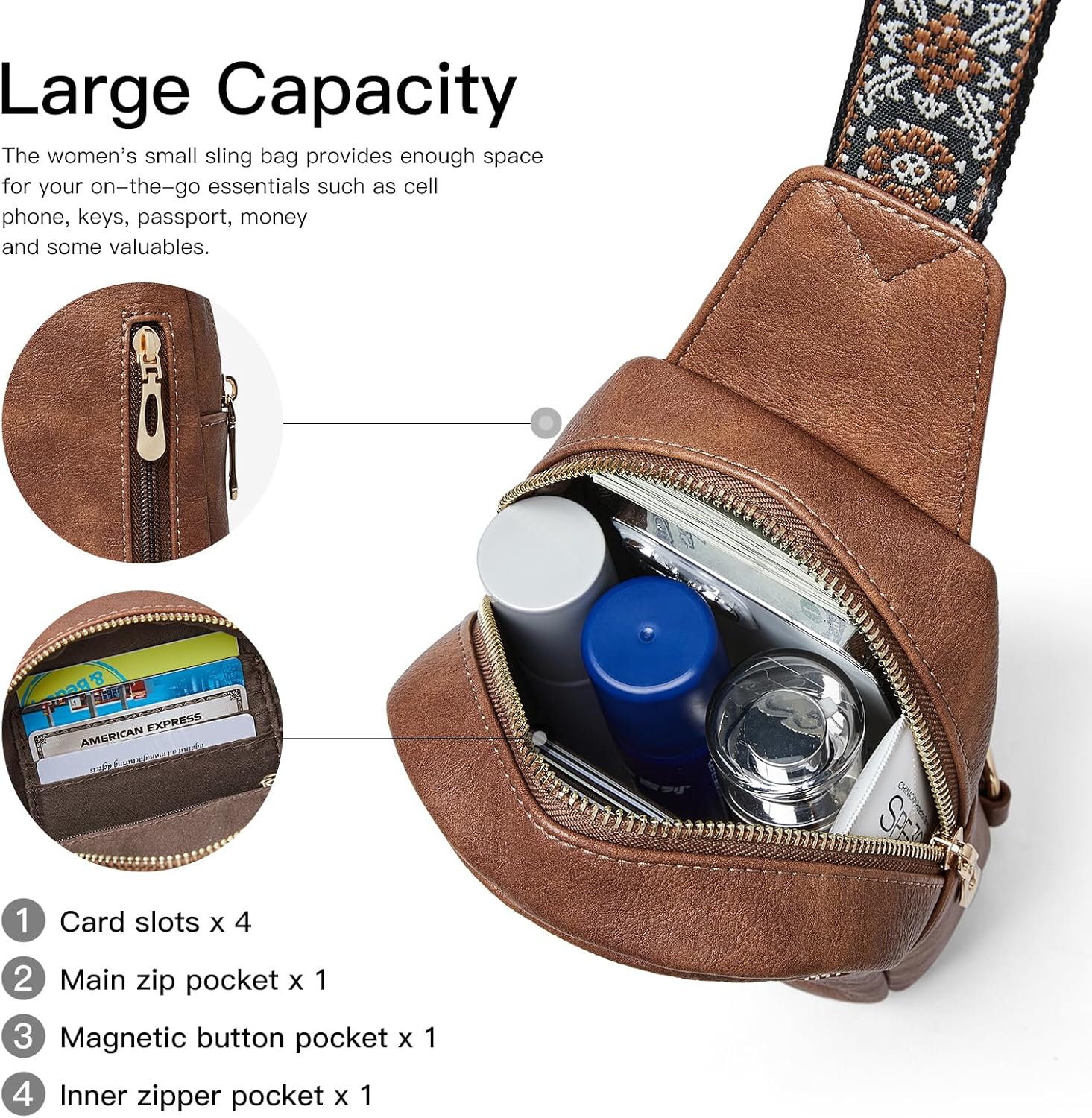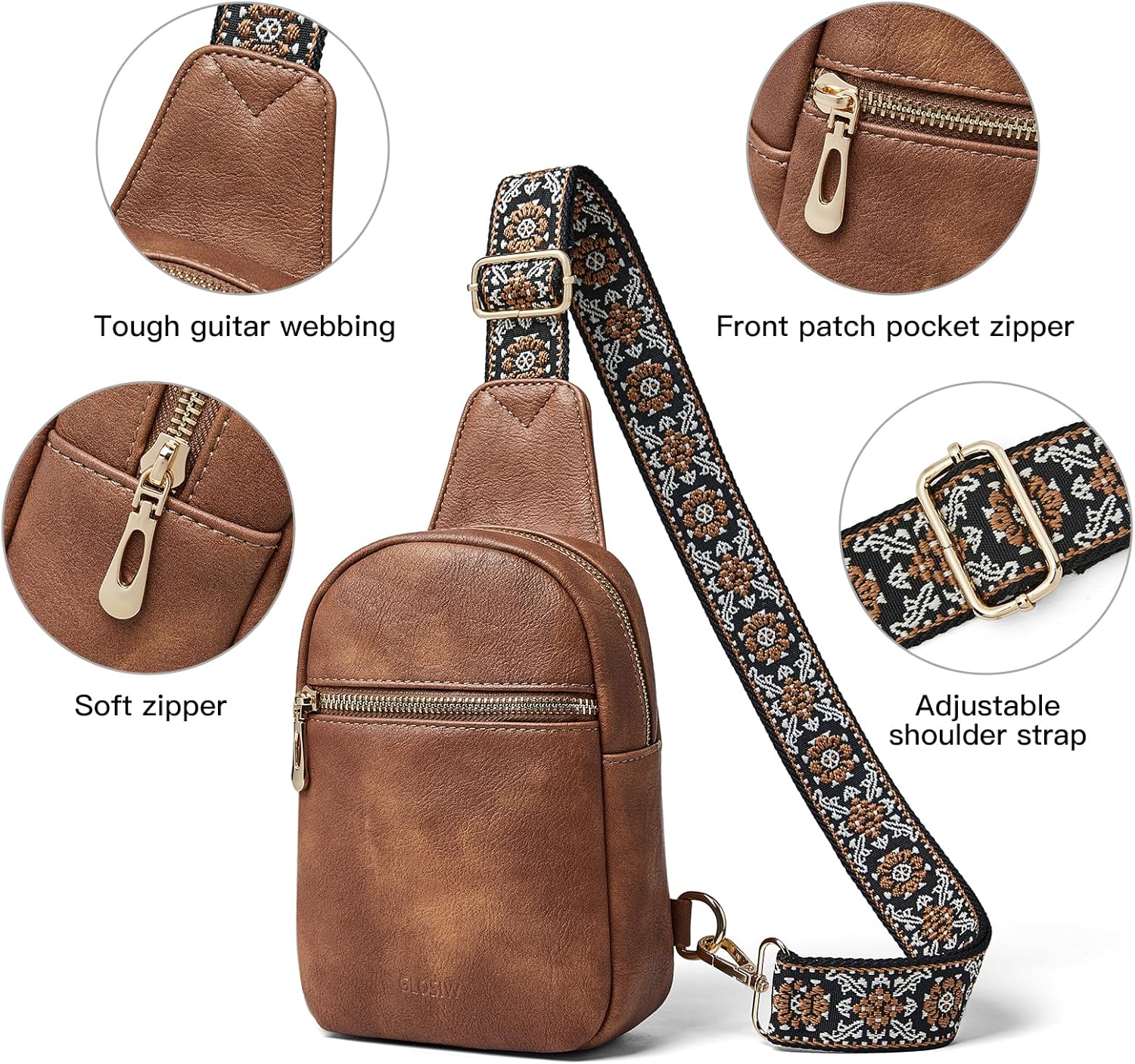 Women’s Crossbody Bag Trendy Small Sling Bag Vegan Leather Chest Bag with Guitar Strap (Brown)