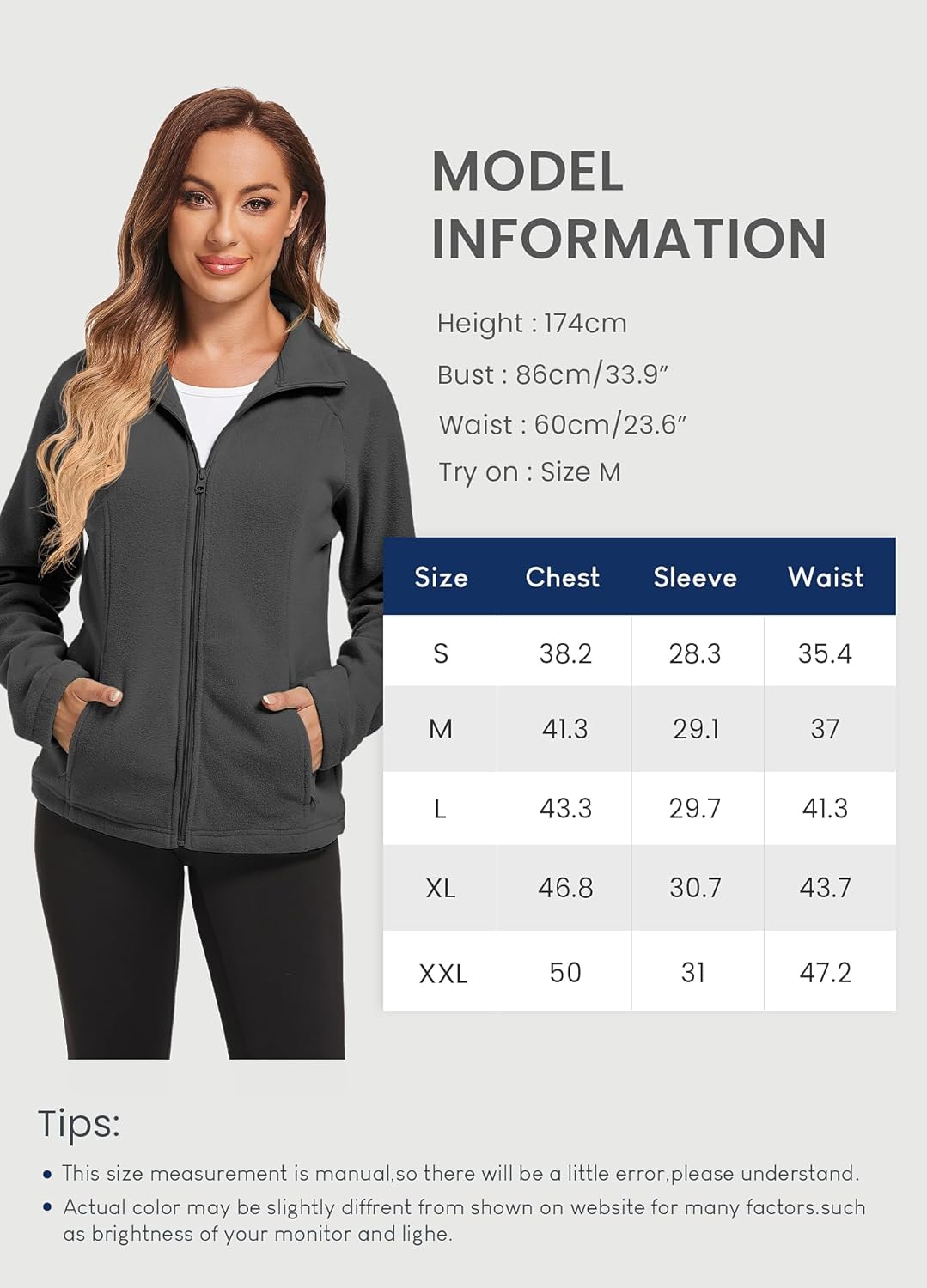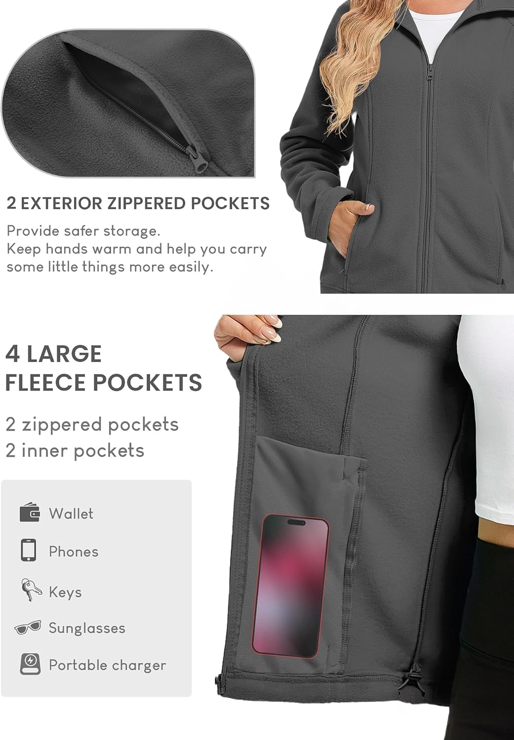 Women’s Fleece Lightweight Jacket Full Zip Fall Warm Zipper Pocket Jacket for Women